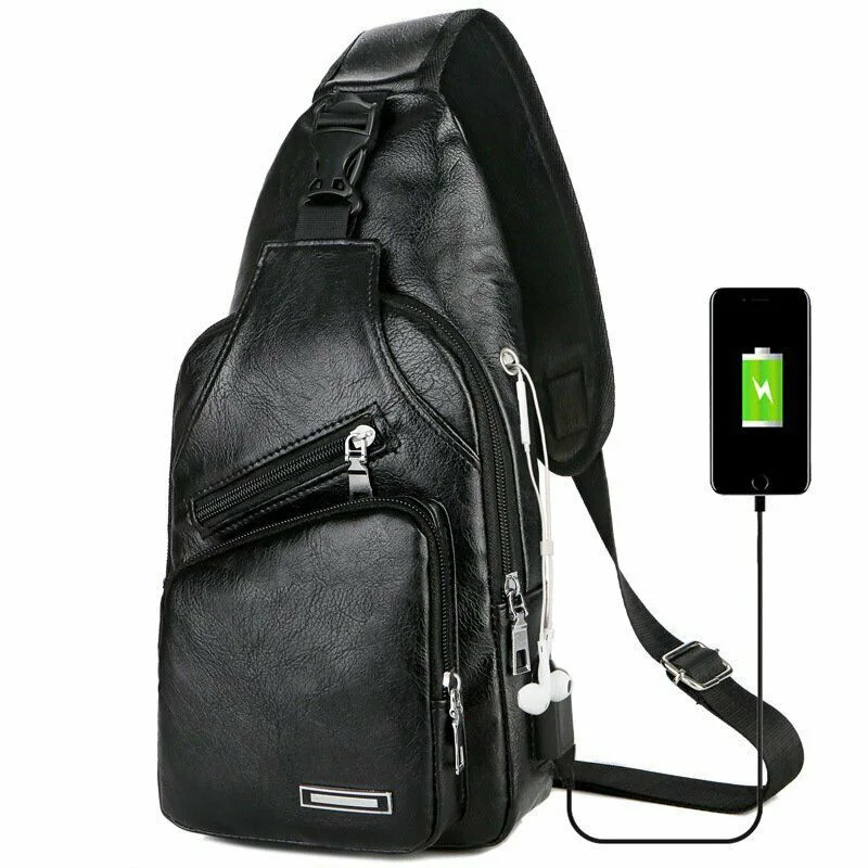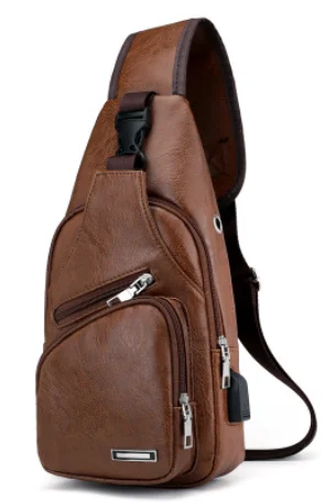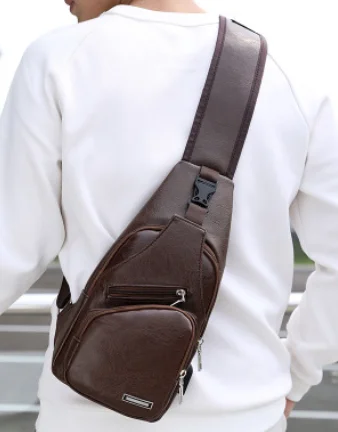 Мужская нагрудная сумка с USB-зарядкой, кожаная слинг-сумка на плеч...