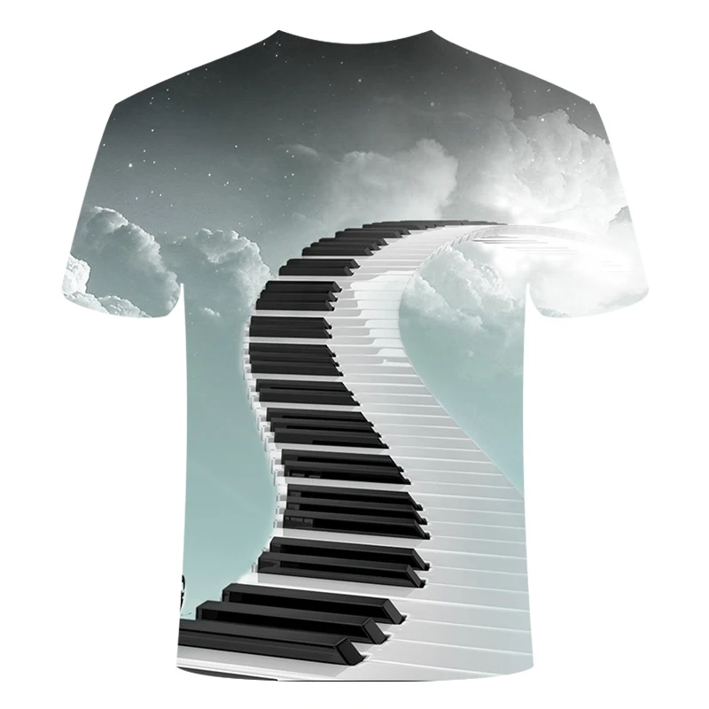 Футболка с 3D принтом музыкальных инструментов, модная черная футбо...