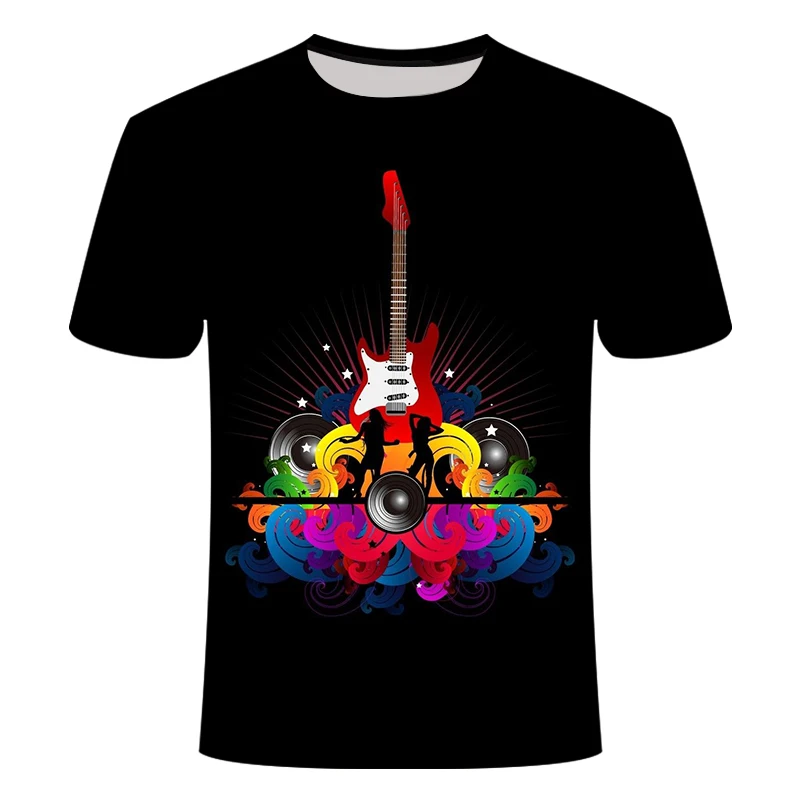 Футболка унисекс, полноразмерная модная футболка с 3D принтом музыкальных инструментов, гитара, стиль хип-хоп, Повседневная летняя уличная одежда