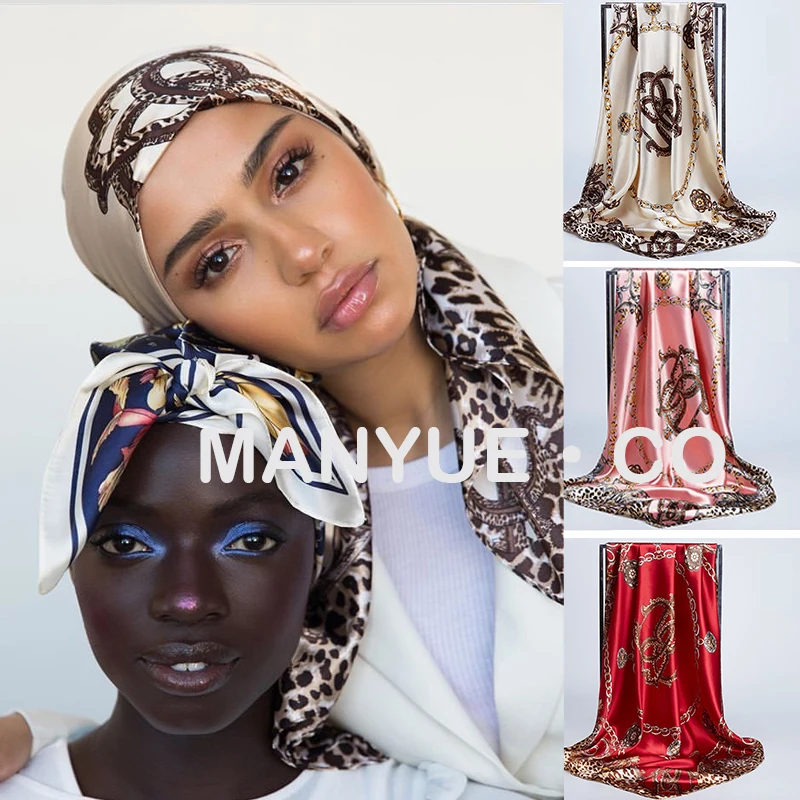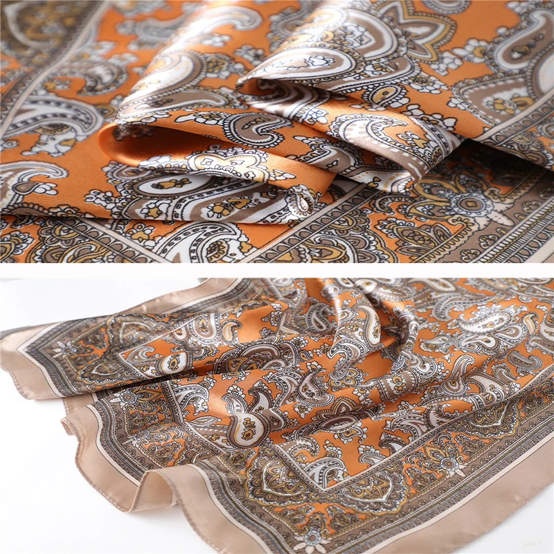 Квадратные шелковые шарфы, женский платок 90*90 см, сатиновый голов...