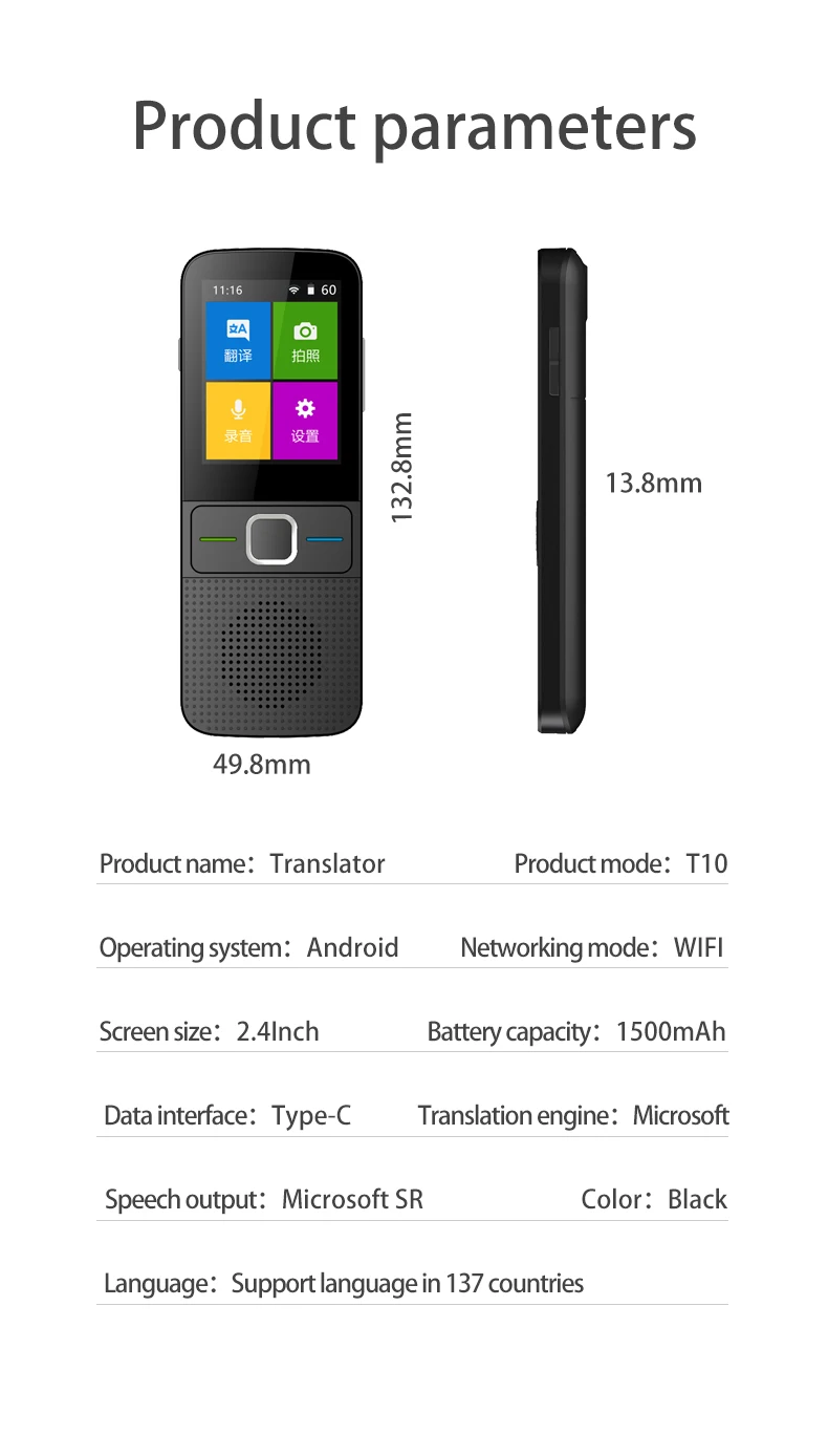 Умный переводчик T10, 137 языков, автономный переводчик, портативны...