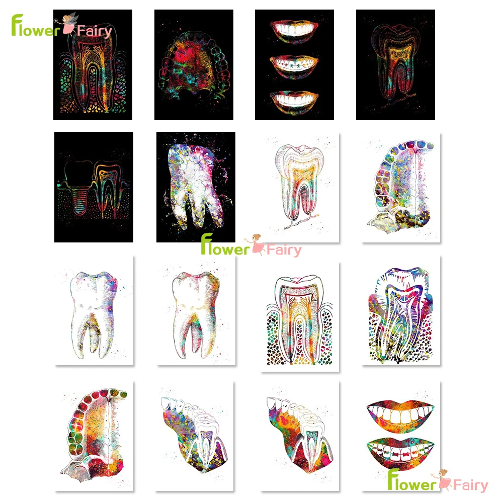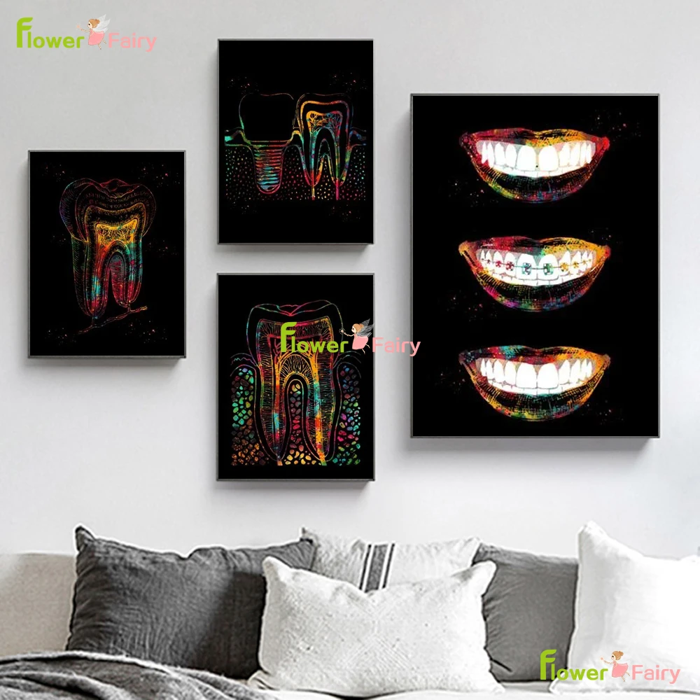 Настенная картина с цветными зубами на холсте, Постер в скандинавском стиле, постеры для стоматологической больницы, настенные картины куадроса для гостиной без рамки