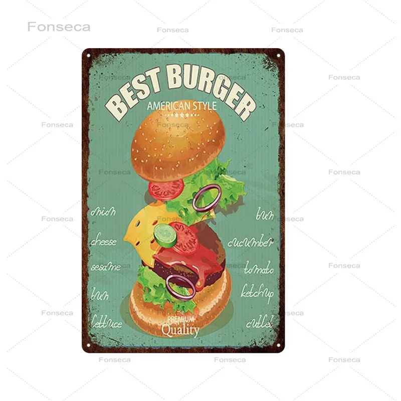 Плакат для фаст-фуда с гамбургерами, металлическая фотография, наст...