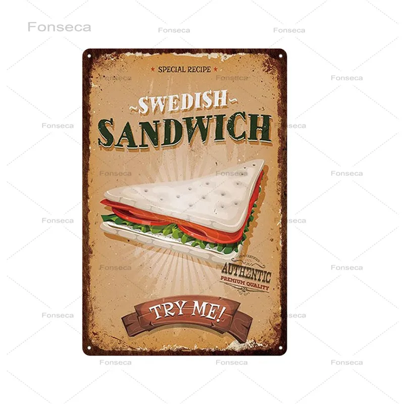 Сэндвич хот-дог бургер металлическая жестяная вывеска Ретро винтажн...