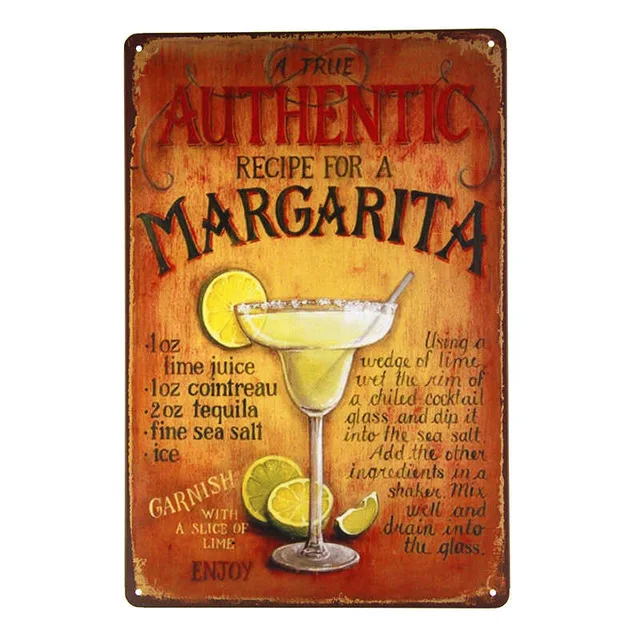 КоктейльПивоМаргарита, металлическая жестяная вывеска, Черное и цветное меню, стандартные металлические поделки, бар, домашний декор, таблички, искусство железа