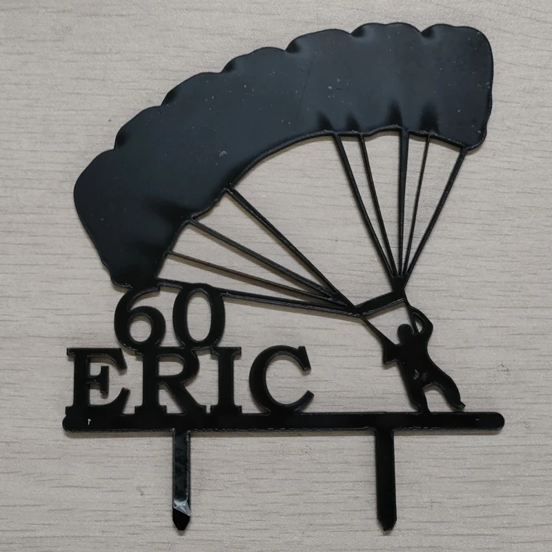 Персонализированный Топпер для торта, с именем на заказ, с парашютом, прыгающий силуэт, украшение для дня рождения