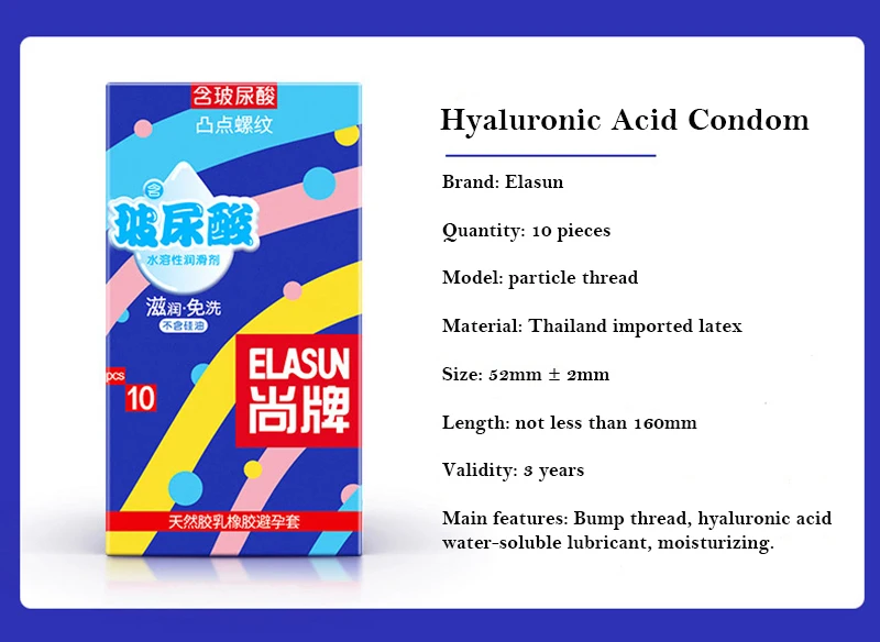 Информация о продукте: 1. Презервативы в горошек и рубчик 2. Безопасный материал с натуральным латексом 3. Плотно прилегает 4. Достаточно Смазывается Бренд: Elasun Материал: натуральный латекс Ширина: 52 мм ± 2 мм Длина: ≥ 160 мм Срок годности: 5 лет Тип: шип и ребристый