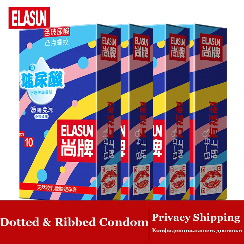 ELASUN 40 шт.лот презервативы в горошек и в рубчик с лотом натуральный латексный презерватив с гиалуроновой кислотой рукав для пениса секс-игрушка контрацепция
