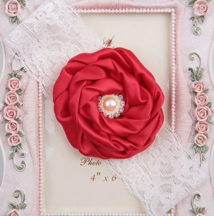 Повязка на голову с жемчугом и цветочным кружевом для новорожденных...