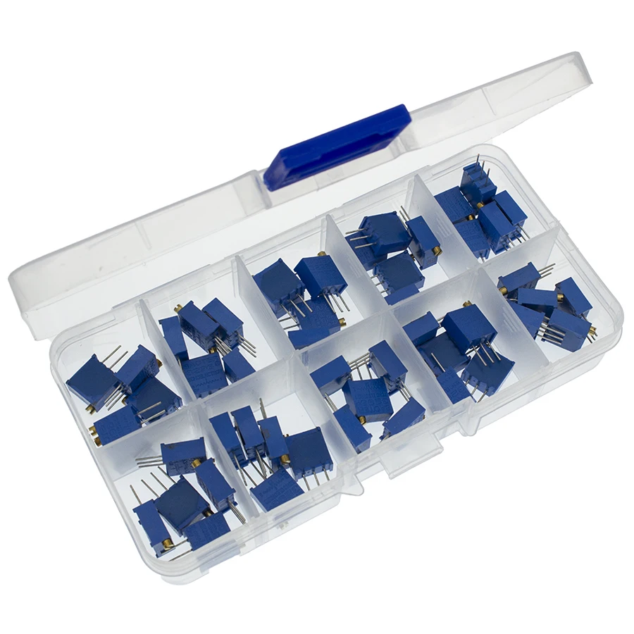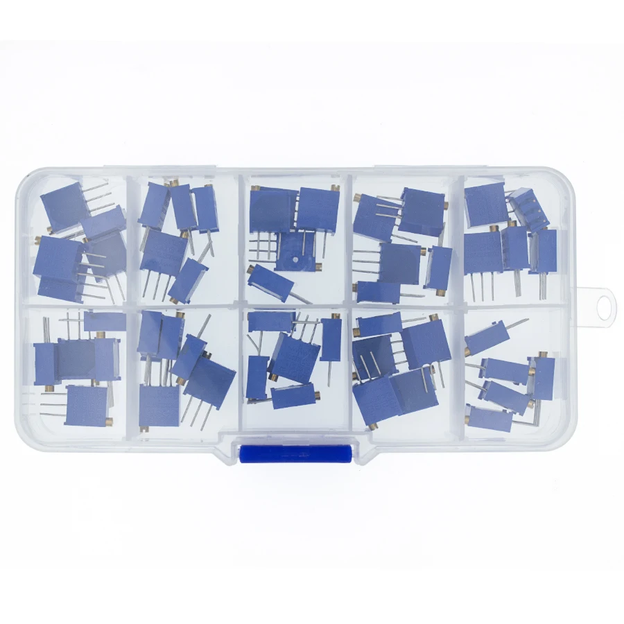 50 шт.лот 3296 Вт серия 500R 1K 2K 5K 10K 20K 50K 100K 200K 1 м многоповоротный потенциометр 10K переменные резисторы с коробкой