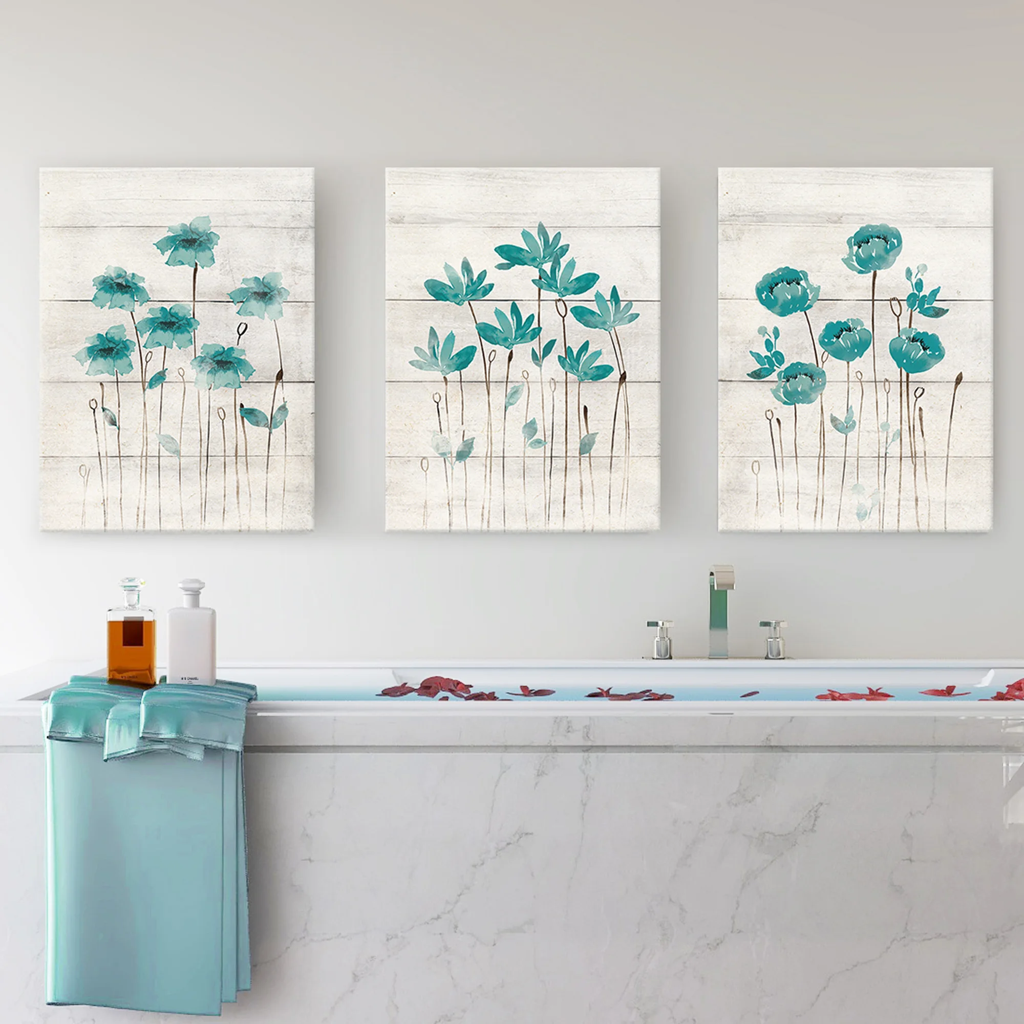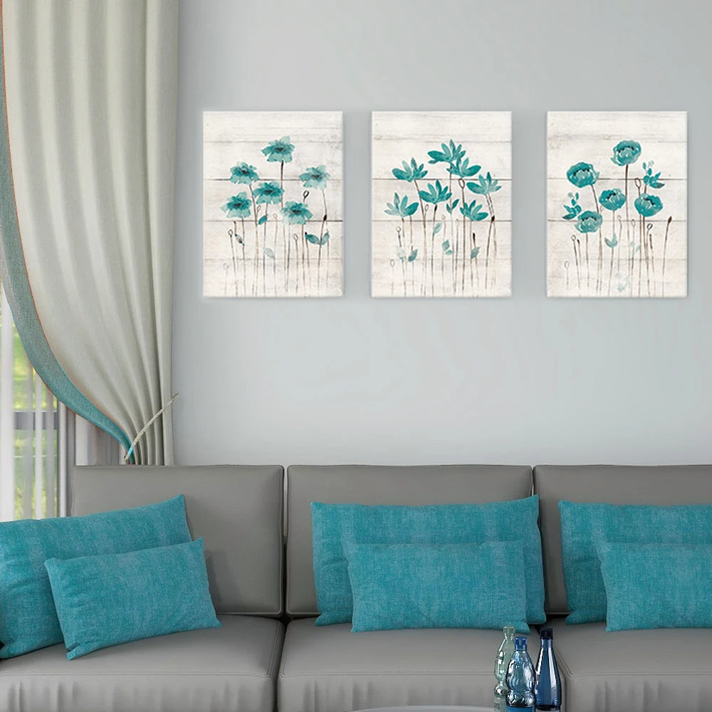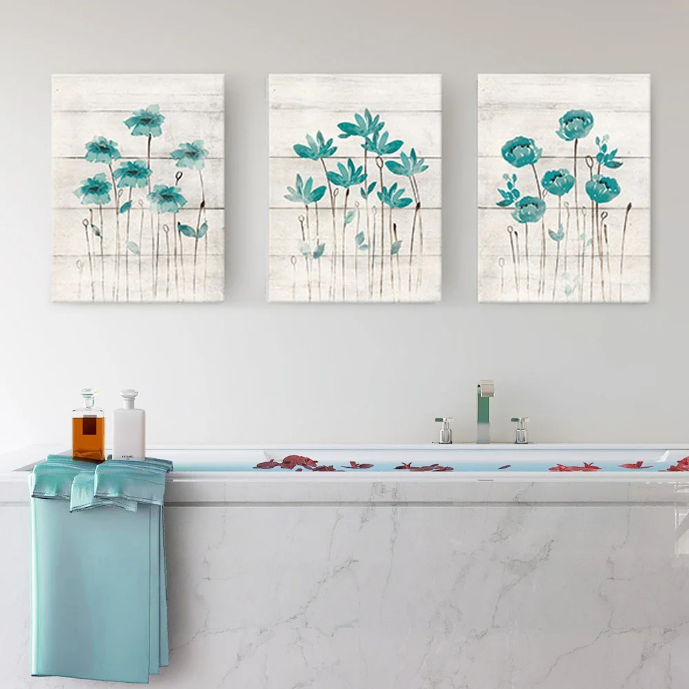 Бирюзовый серый Настенный декор ванной комнаты Холст Картина цветок художественный постер для скандинавского фермерского дома скандинавский спальня домашний декор фотографии
