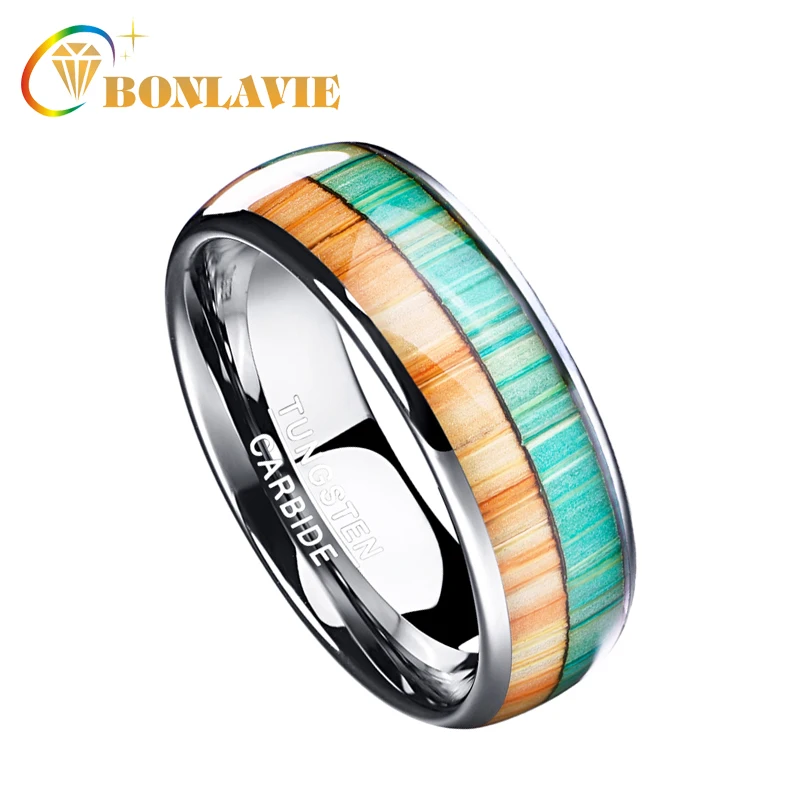 Мужское кольцо BONLAVIE, из вольфрамовой стали, шириной 8 мм, с полировкой, оранжевого и зеленого цветов, с отделкой под дерево