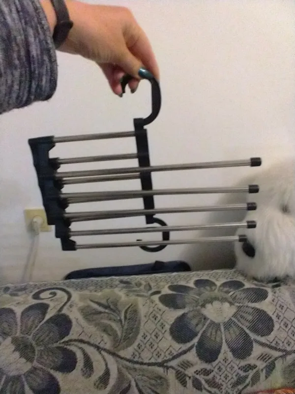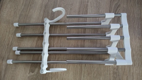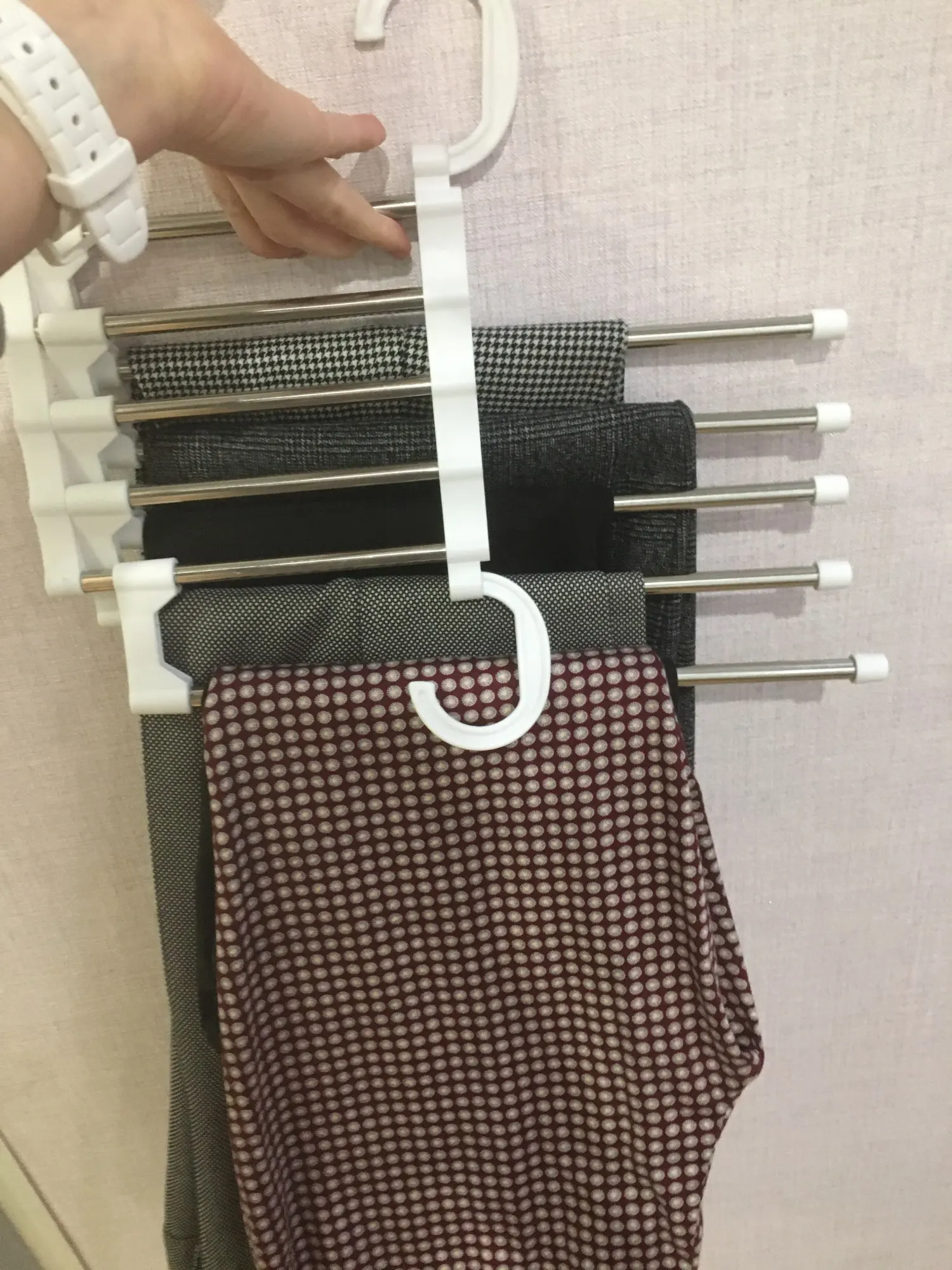 Отличный товар, очень практичный, чтобы повесить несколько брюк или другие. Выглядит солидно и хорошего качества. Это помогает много хранить гардеробную! Большое вам спасибо.