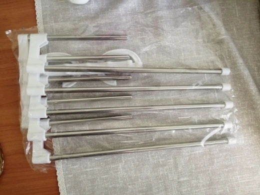 Доставка занимает всего 10 дней. У меня нет никаких жалоб на товар, потому что я его еще не использовал. Я не знаю, как вес будет удерживаться, как металлические стержни, вешалки сами пластиковые, и я не знаю, будут ли они очень устойчивы.