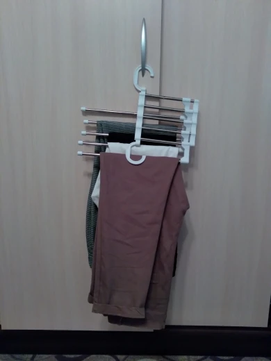 Интересная приспособа. Сделана неплохо. Единственное, думаю взрослые брюки, такие как джинсы, много не навешаешь. Крючки - пластик, хлипковаты будут, для тяжести брюк на взрослых людей. Купила дочке, она У нас еще совсем ребёнок. Детские брюки вешать в самый раз.