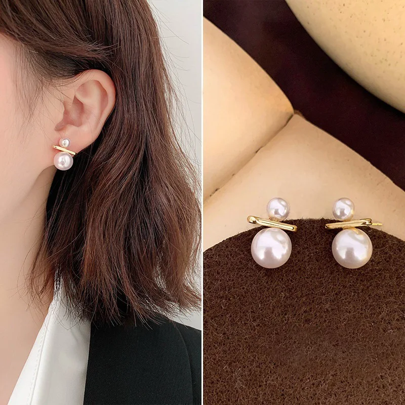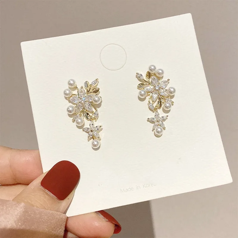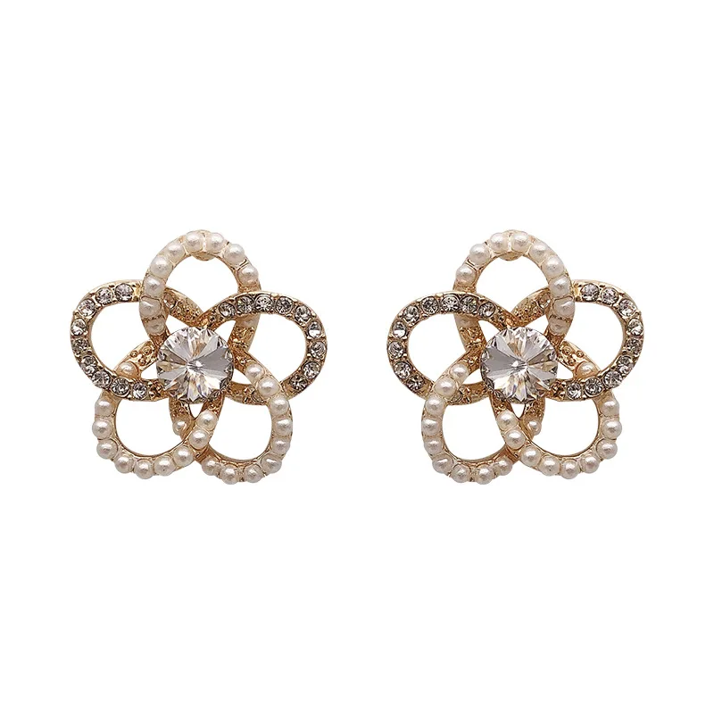 Женские серьги-гвоздики в богемном стиле, с жемчугом и кристаллами