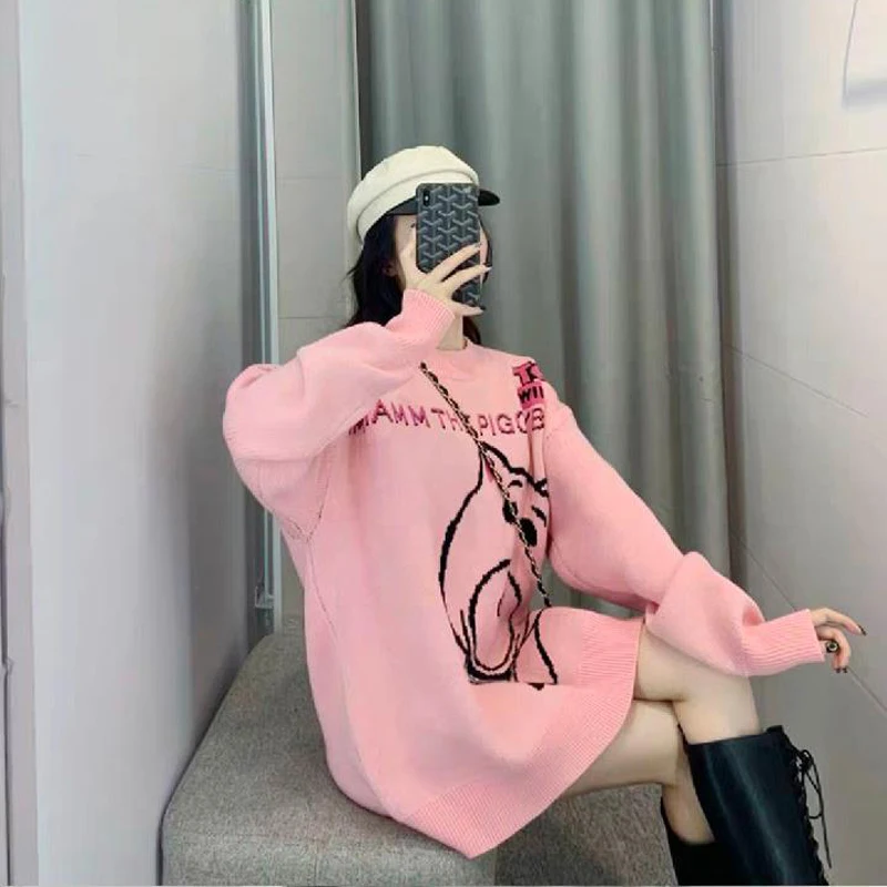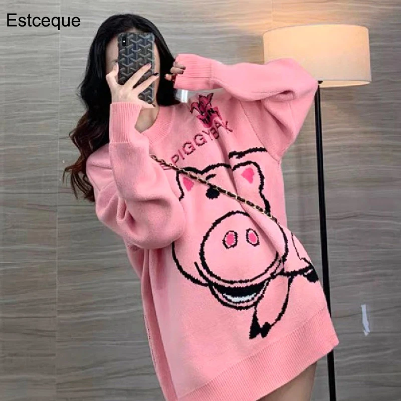 Свитер Kwaii с изображением милой девочки, Рождественский свитер, женский осенне-зимний винтажный свободный розовый свитер, женская верхняя одежда