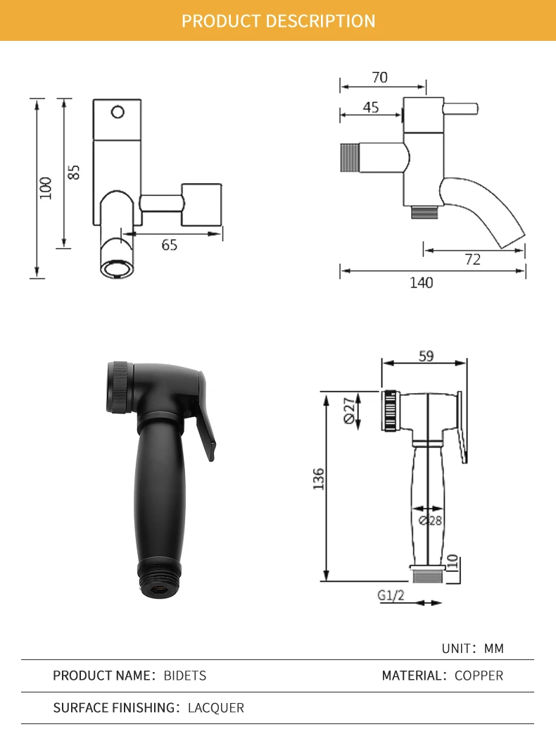 Цвет: матовый черныйВесь набор включает в себя Латунное биде + держатель ABS + шланг для душа/ПВХ пружинная трубка + кран