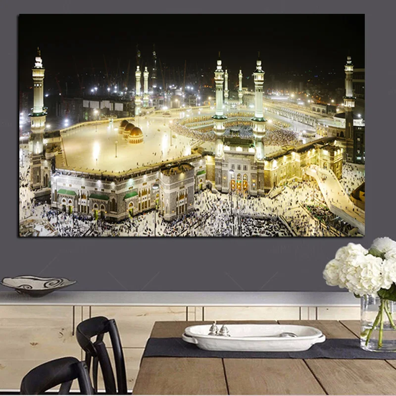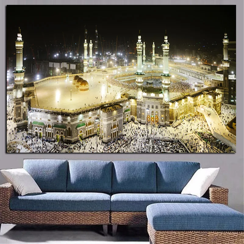 HD Печать Мекка священный исламский пейзаж картина маслом Религиозная архитектура мусульманская мечеть Настенная картина для гостиной
