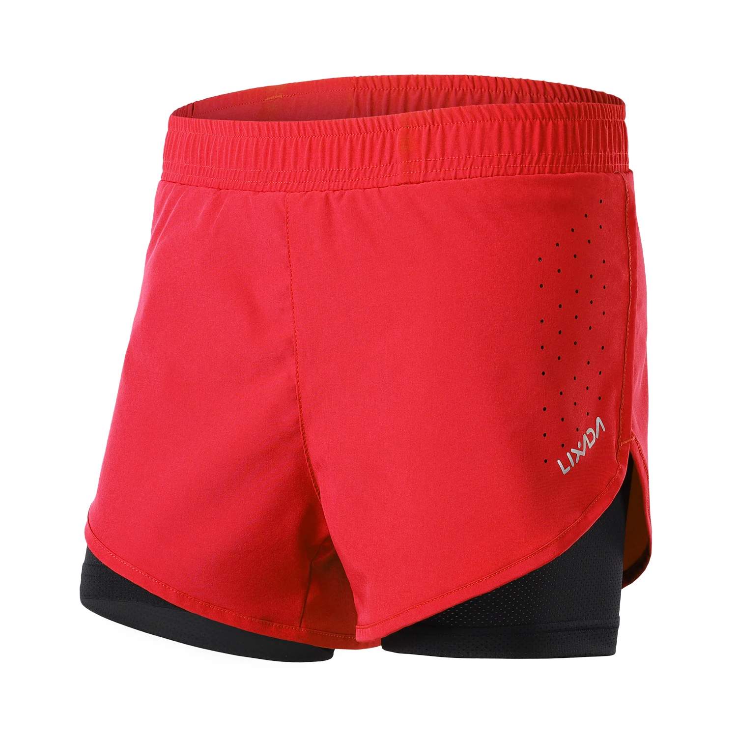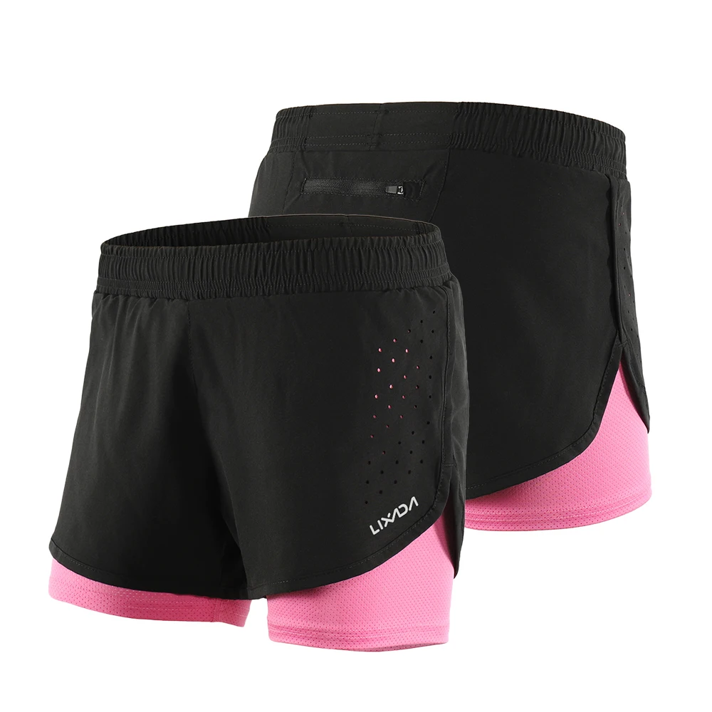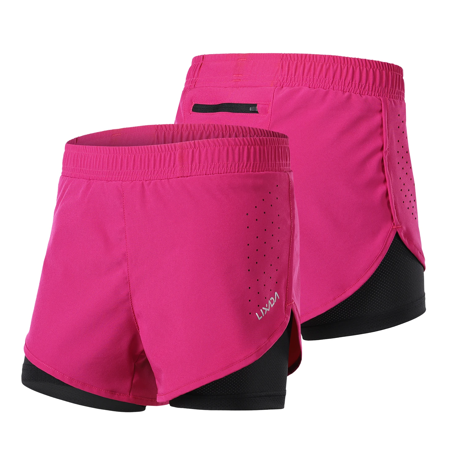 Женские шорты для бега Lixada 2 в 1 с эластичным поясом, облегающие шорты для йоги, спортивные короткие розовые шорты для спортивного зала и фитнеса, спортивная одежда
