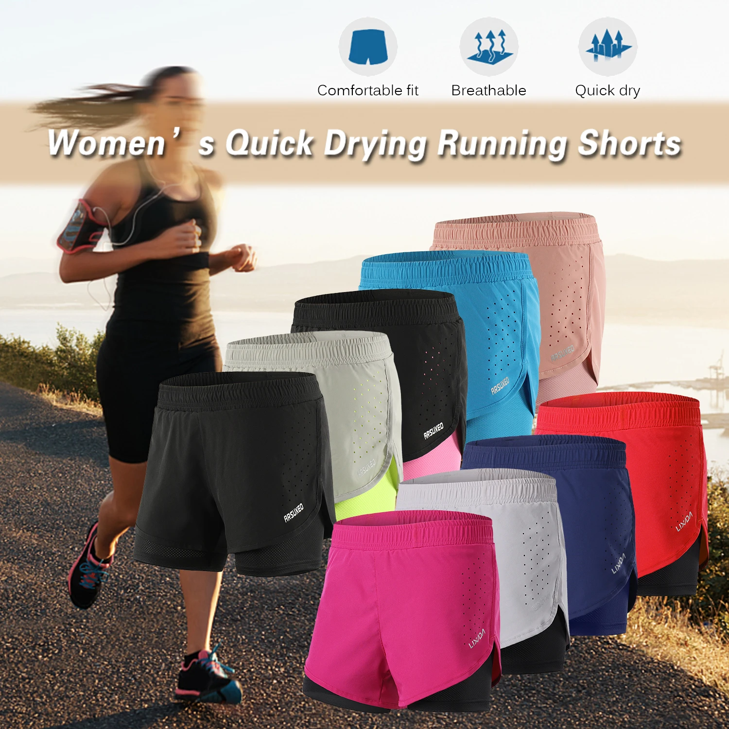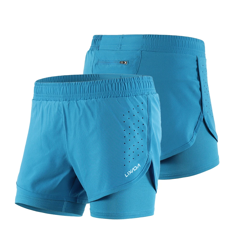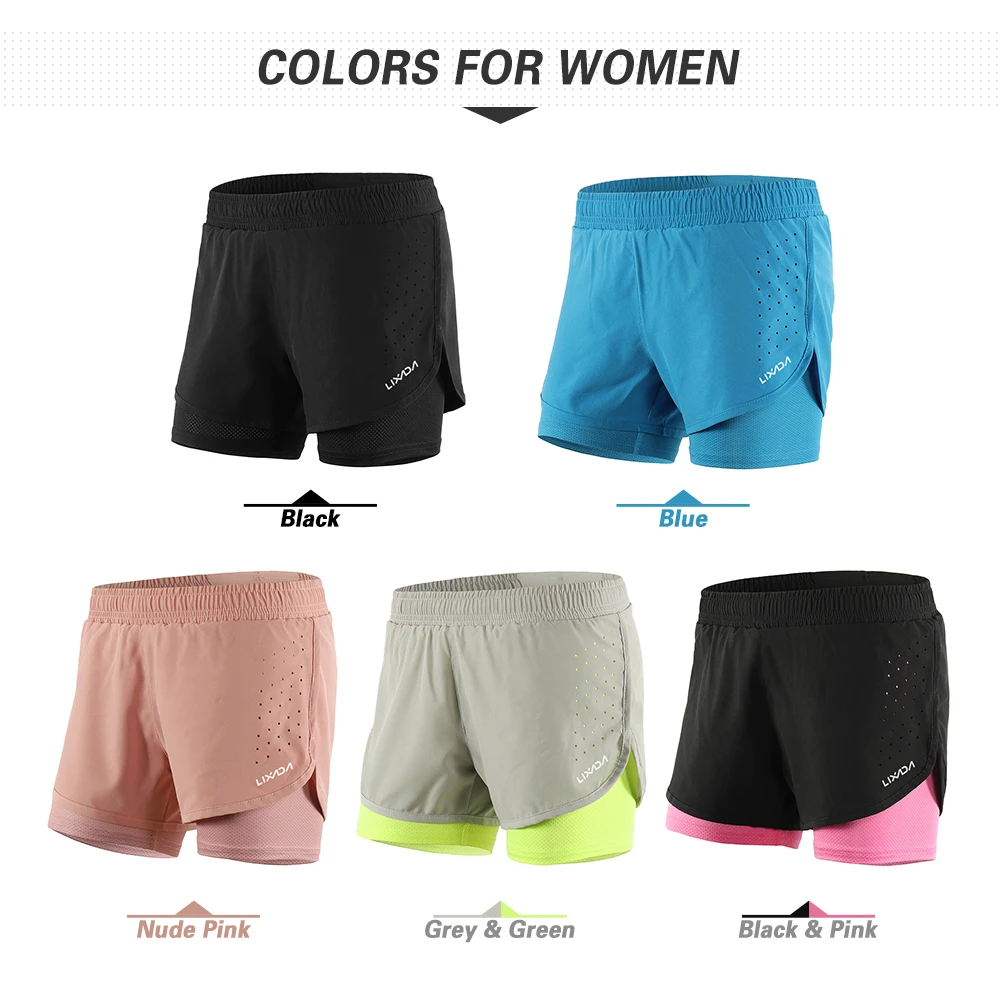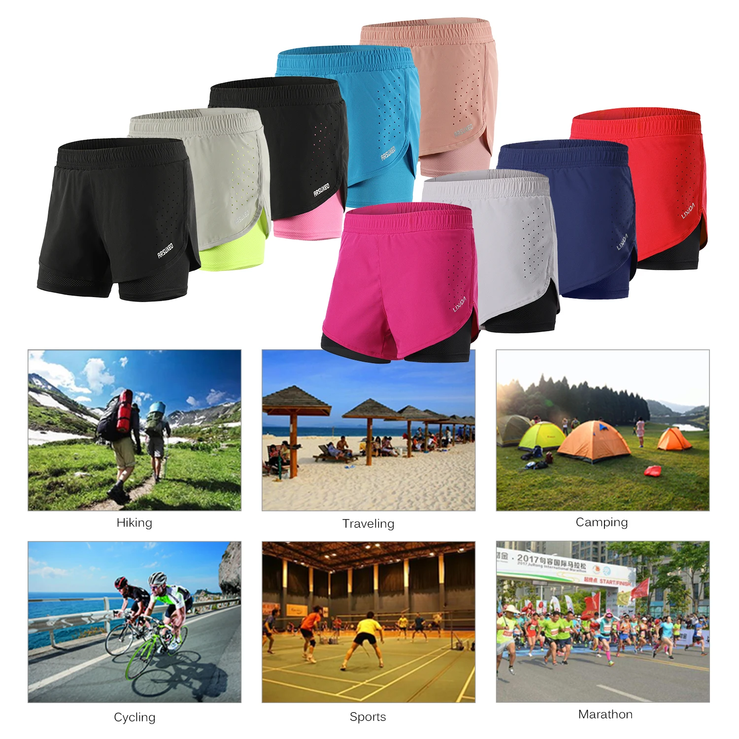 Женские шорты для бега Lixada 2 в 1 с эластичным поясом, облегающие шорты для йоги, спортивные короткие розовые шорты для спортивного зала и фитнеса, спортивная одежда