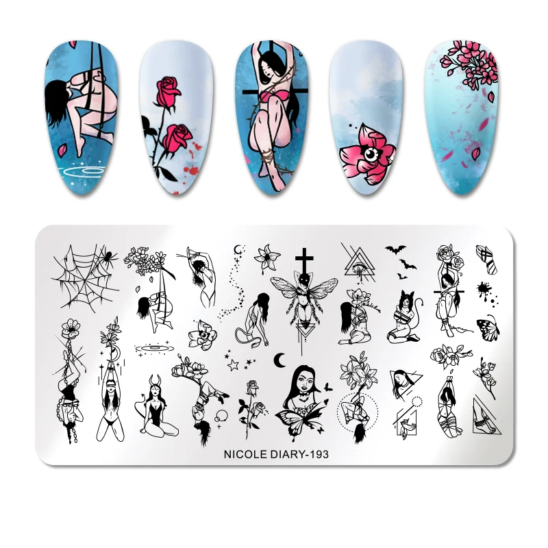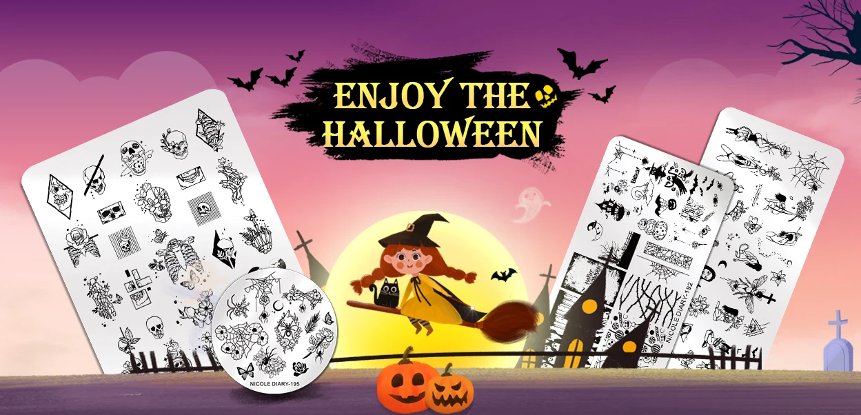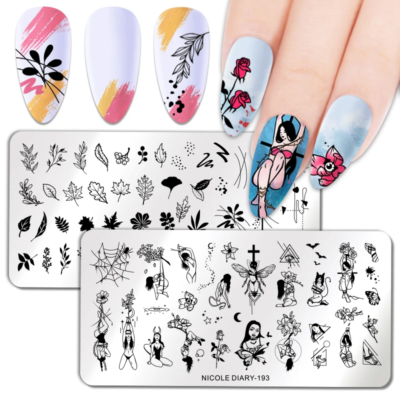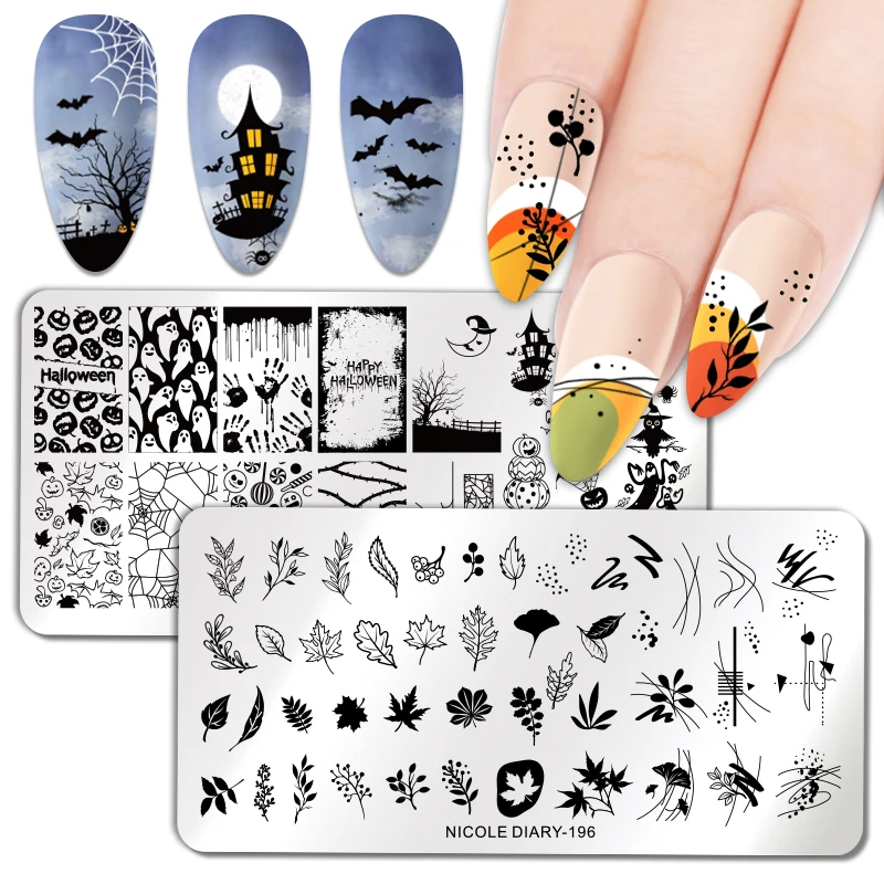 Пластины для стемпинга ногтей с изображением тыквы, цветов, животных, фруктов
