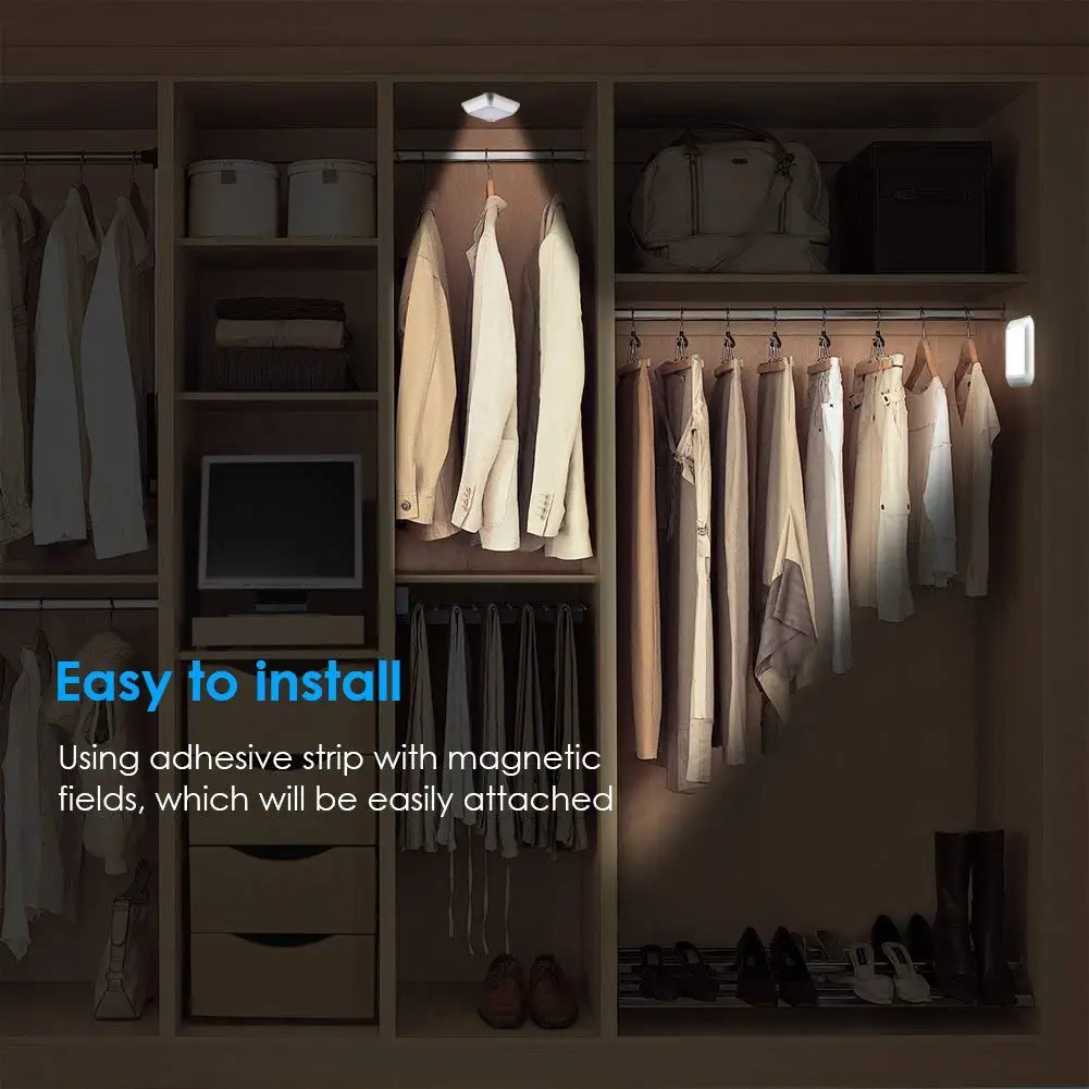 Умный датчик движения, свет со встроенными датчиками, которые обнаруживают движение до 10 футовПодходит для спальни, детской комнаты, шкафа, шкафа, коридора, мастерской, подвала, гаража, лестницы, депо, крыши, двери, входных и складских помещений
