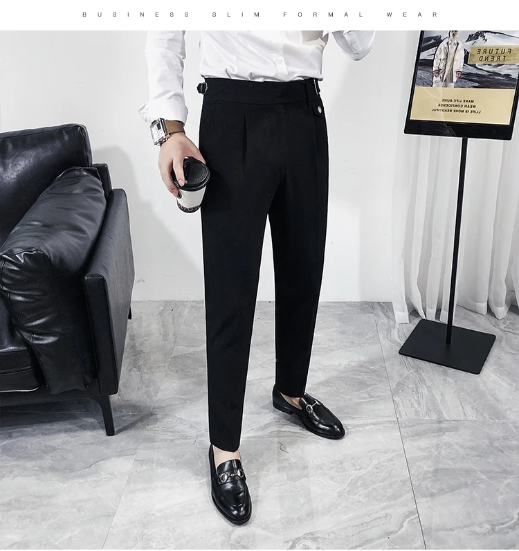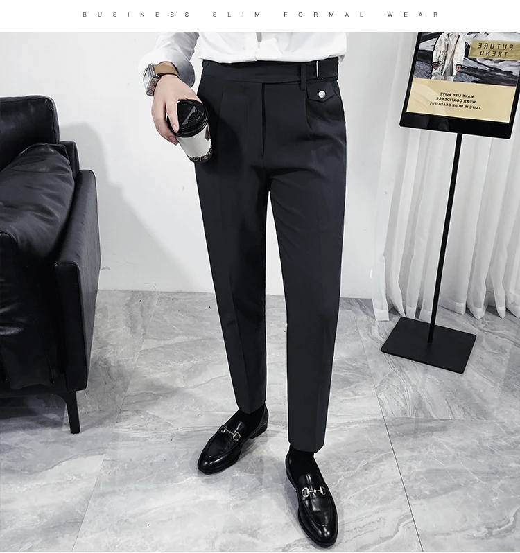 Мужские деловые повседневные узкие брюки, Формальные Прямые брюки в...