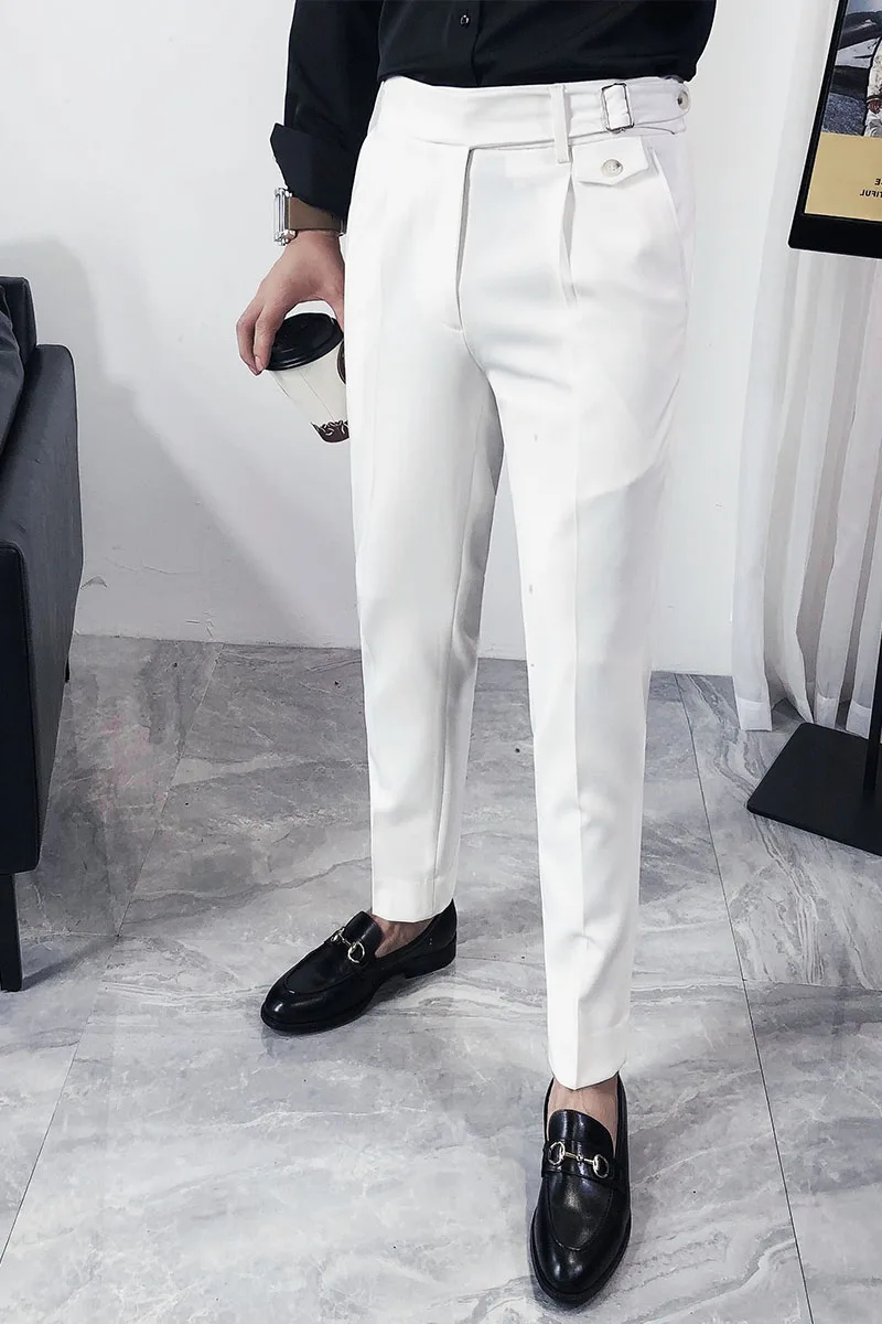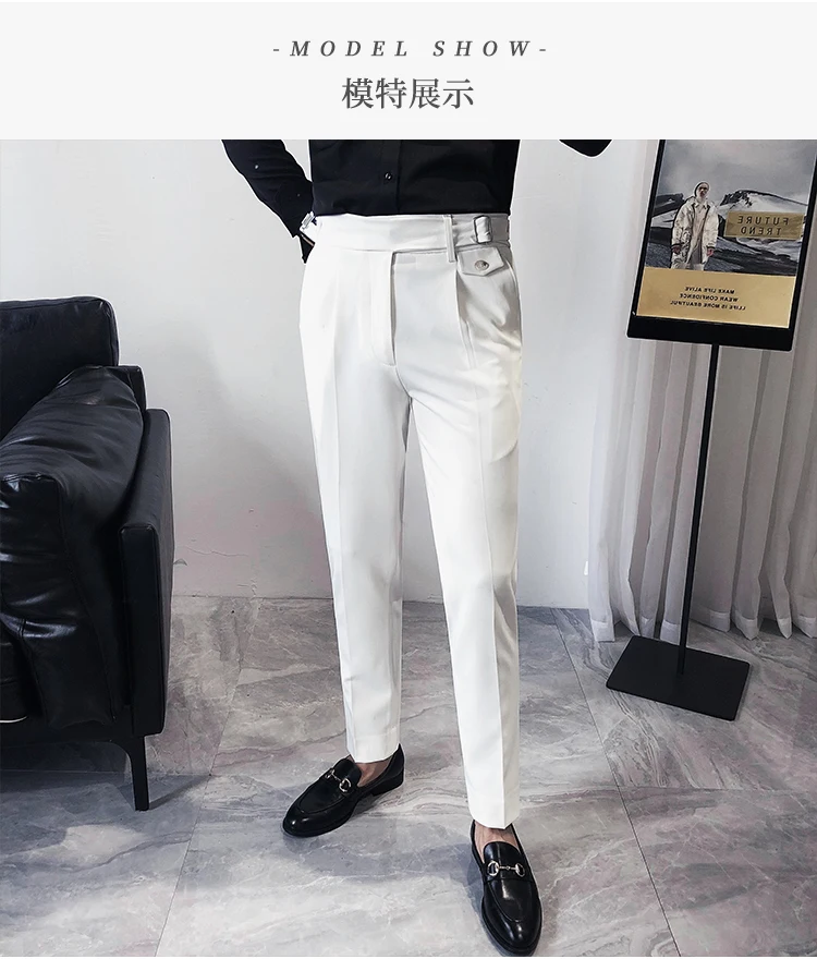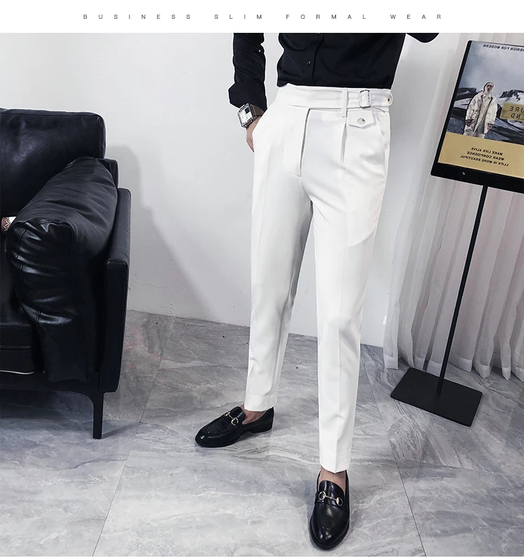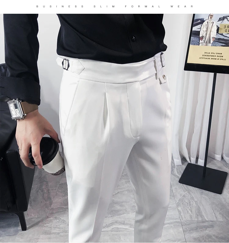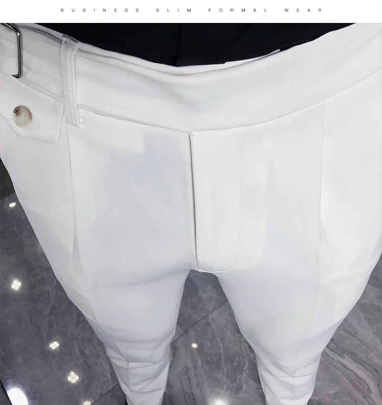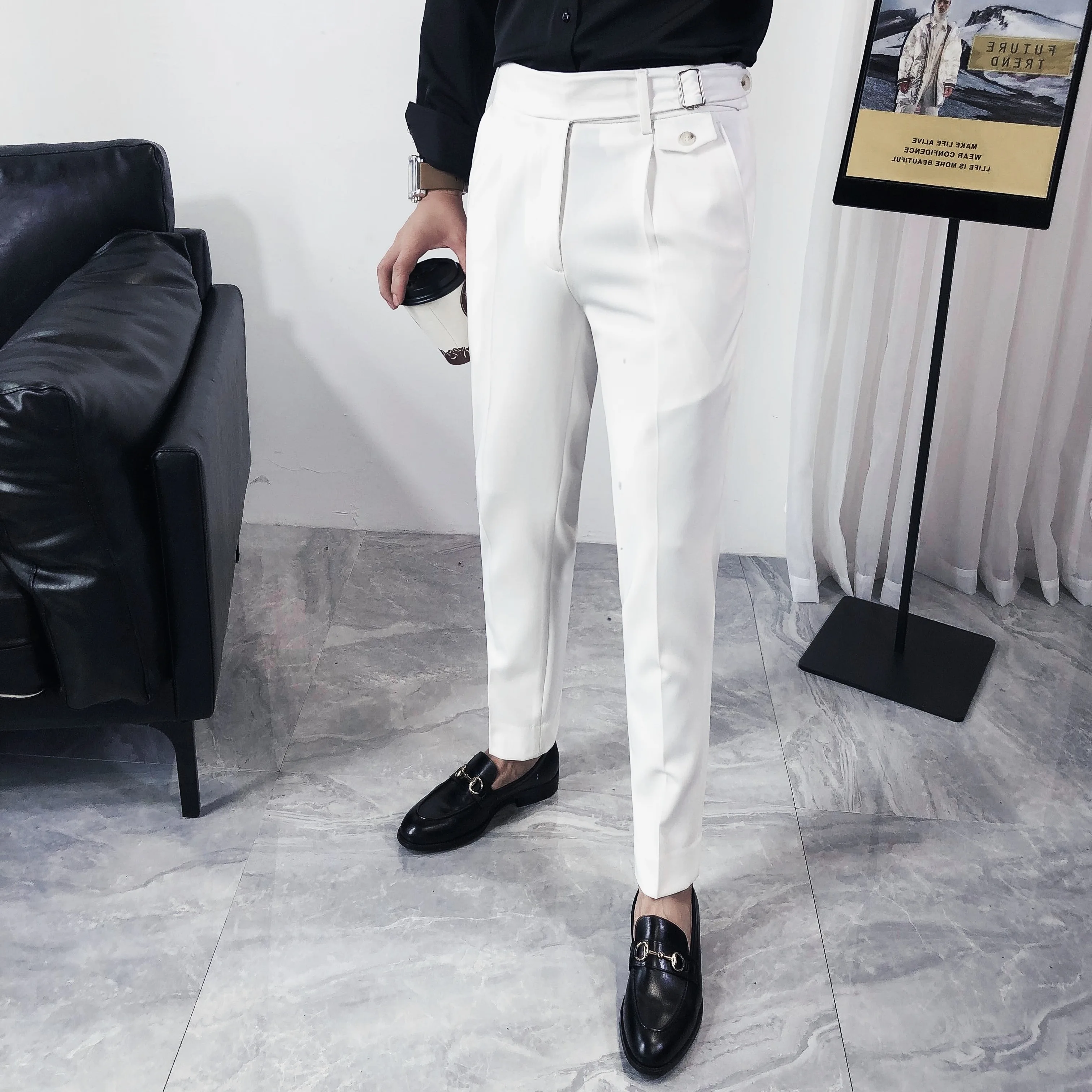 Мужские прямые брюки, в Корейском стиле, Осенние, белые, повседневные, облегающие, офисные