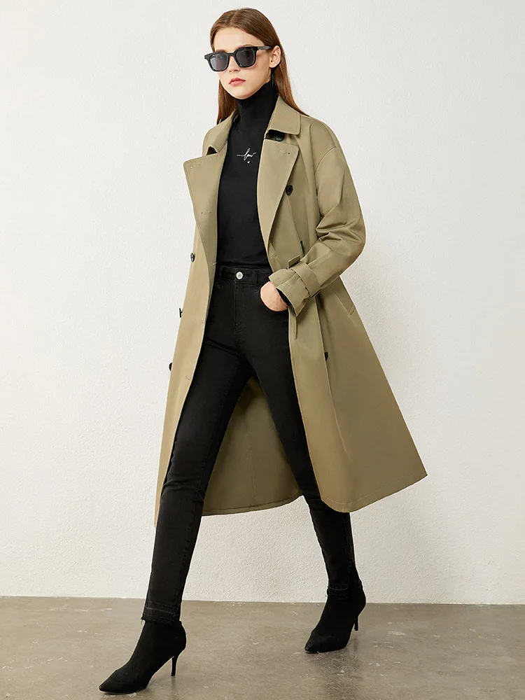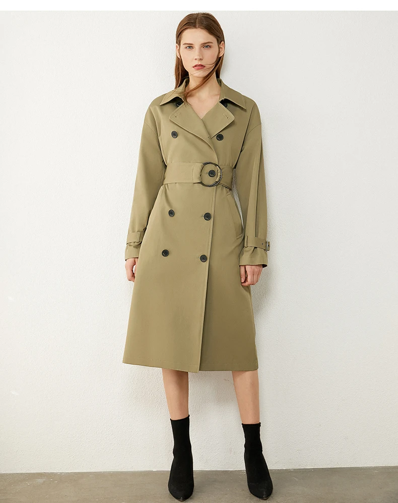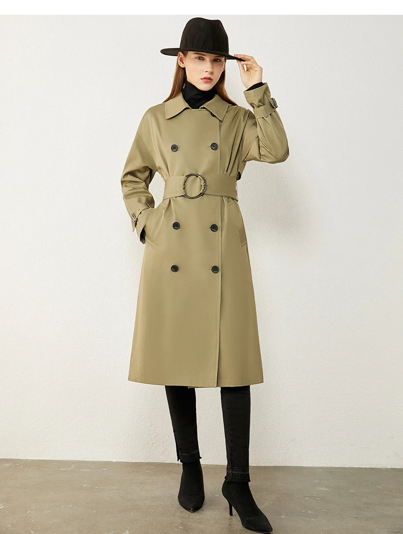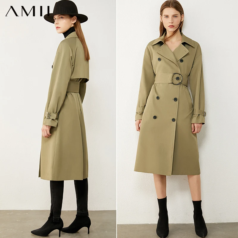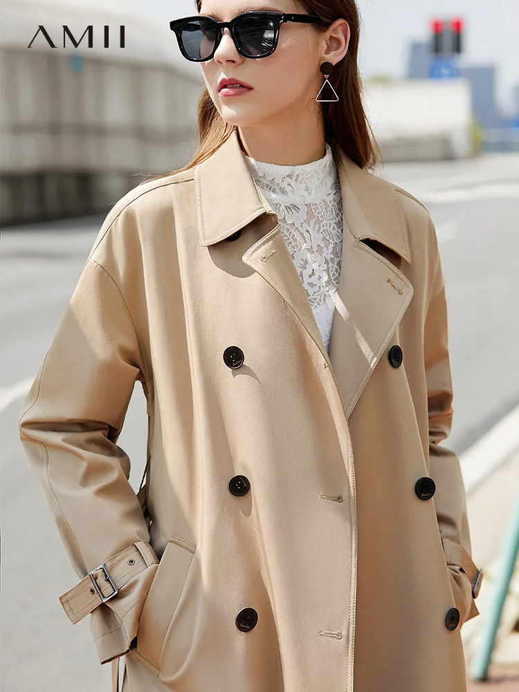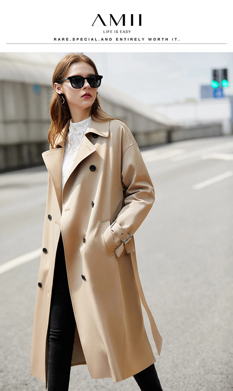 Amii минимализм, британский стиль, модный женский плащ, Повседневный, однотонный, с отворотом, на поясе, женское ветрозащитное пальто, 12040558