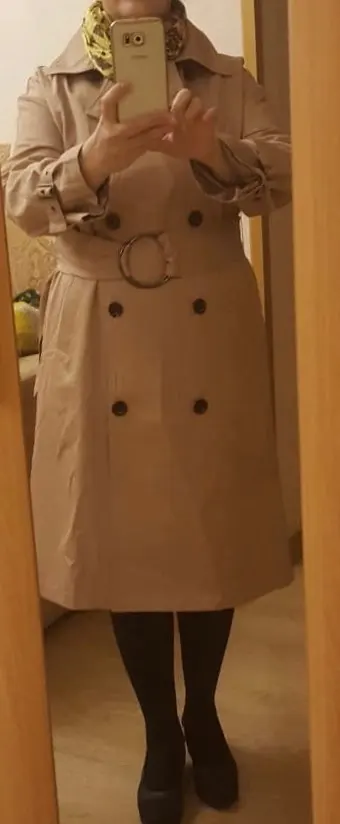 очень классный и качественный тренч, но размер немного странный,ориентировалась на отзывы и размерную сетку при заказе. Размер М, на нем стоит размер 160/84А. На рост 162, параметры 88-70-95 длина нормально,чуть ниже колен, ширина тоже ок, больше размер был бы велик, но рукава коротковаты, не хватает пары см, и петли под пояс высоко, если в них вставлять, то получается почти под грудью пояс, надо перешивать или убирать их. В остальном все супер, качество огонь!