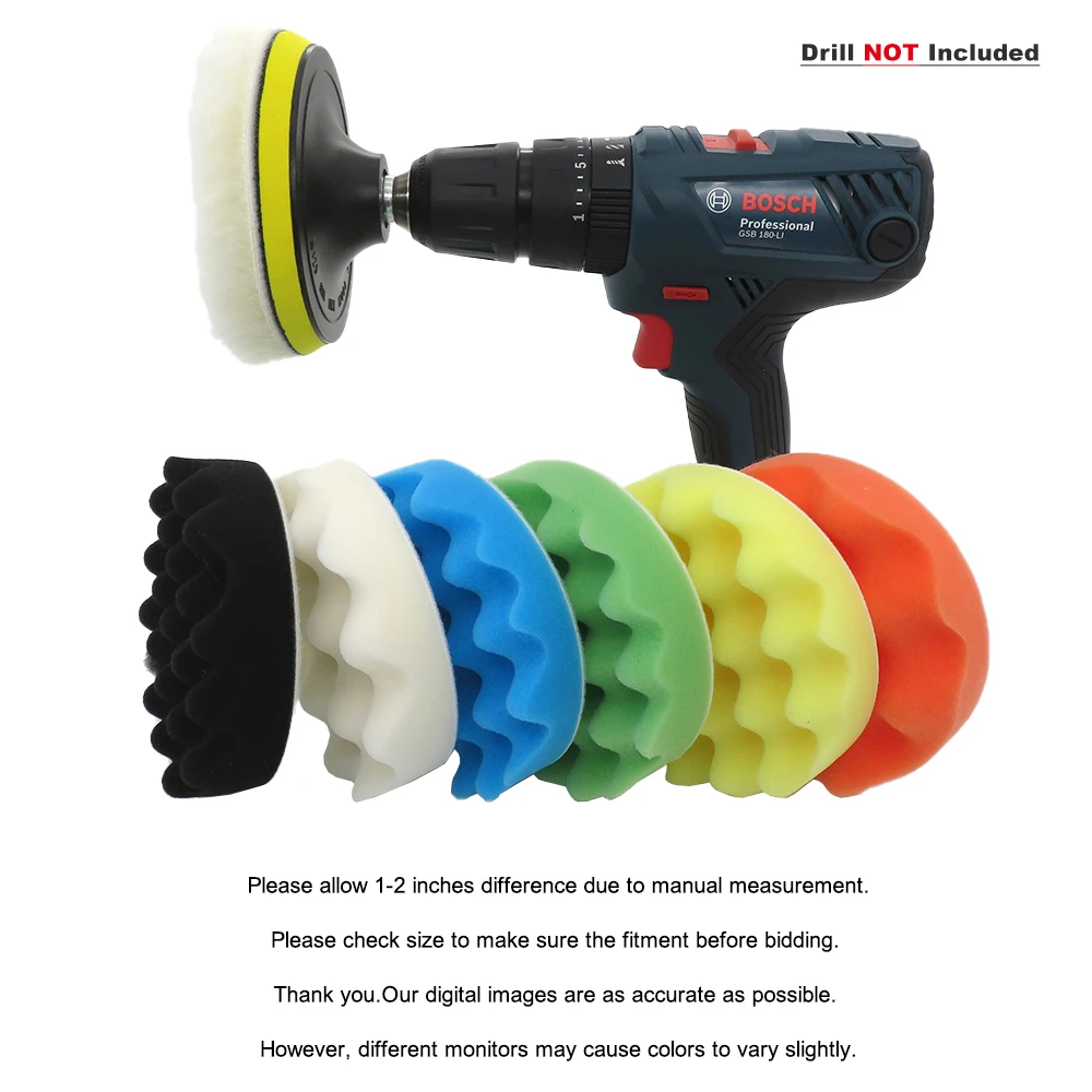 6 x губчатая полировальная подушка,1x шерстяная буферная прокладка,1x M14 резьбовое сверло с хвостовиком.