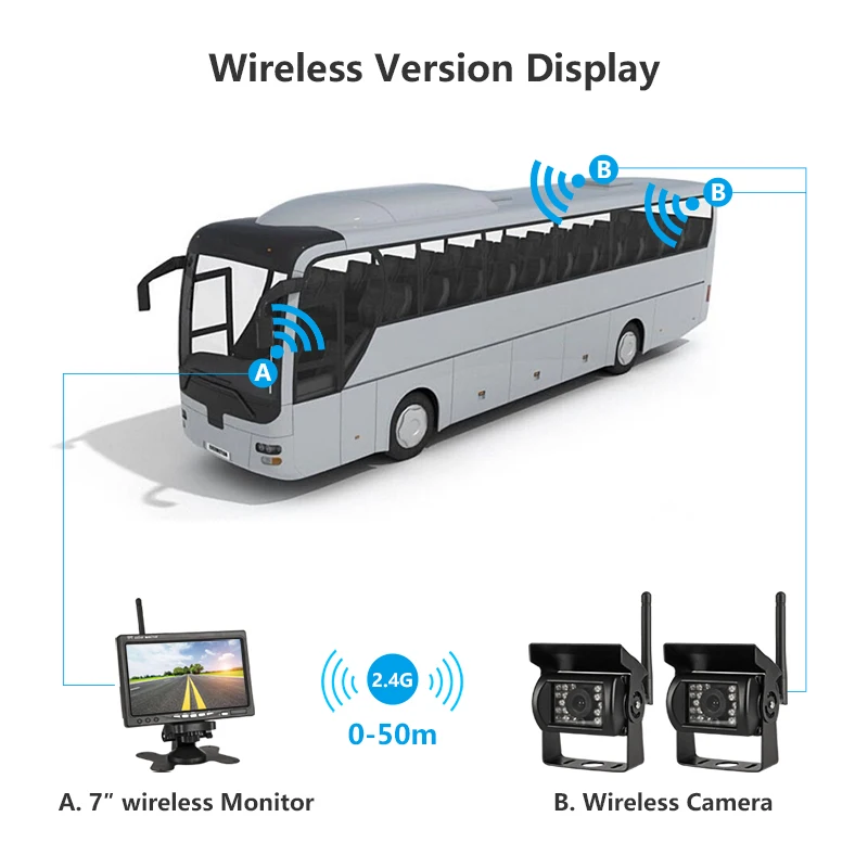 7-дюймовый беспроводной автомобильный монитор TFT HD Автомобильная резервная камера s DVD Камера заднего вида напряжение объектива 12-24 в парковочная система заднего вида для автобуса грузовика