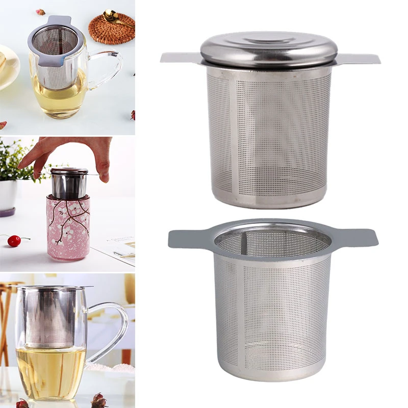 Сетчатый ситечко для заваривания чая из нержавеющей стали, металлическая чашка, ситечко, многофункциональный фильтр для рассыпного листового кофе, травы, специй с крышкой, аксессуары для чая