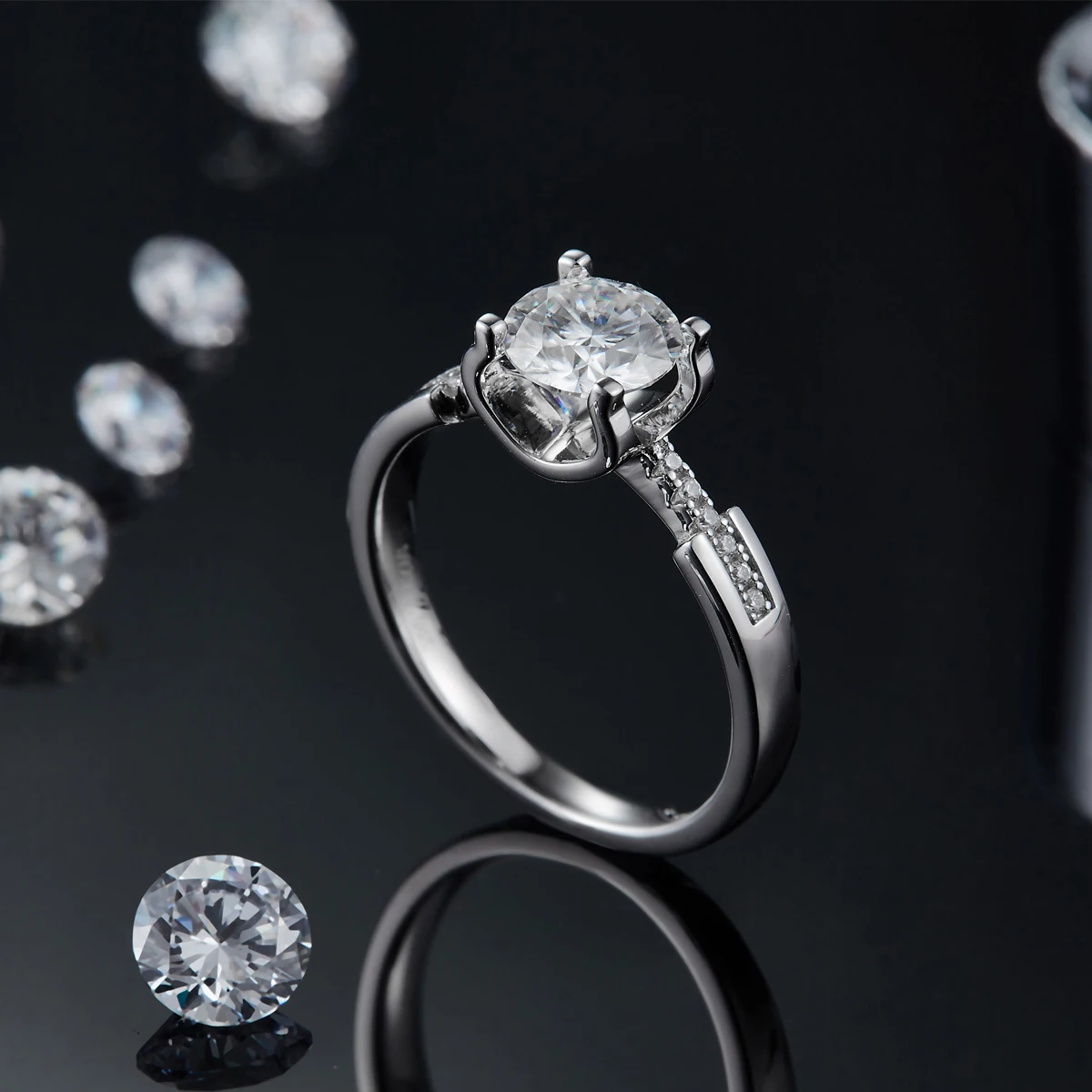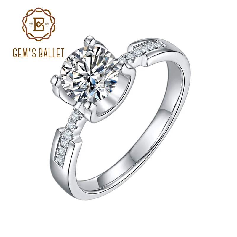 Женское балетное кольцо GEM'S, классическое круглое моиссанитовое к...