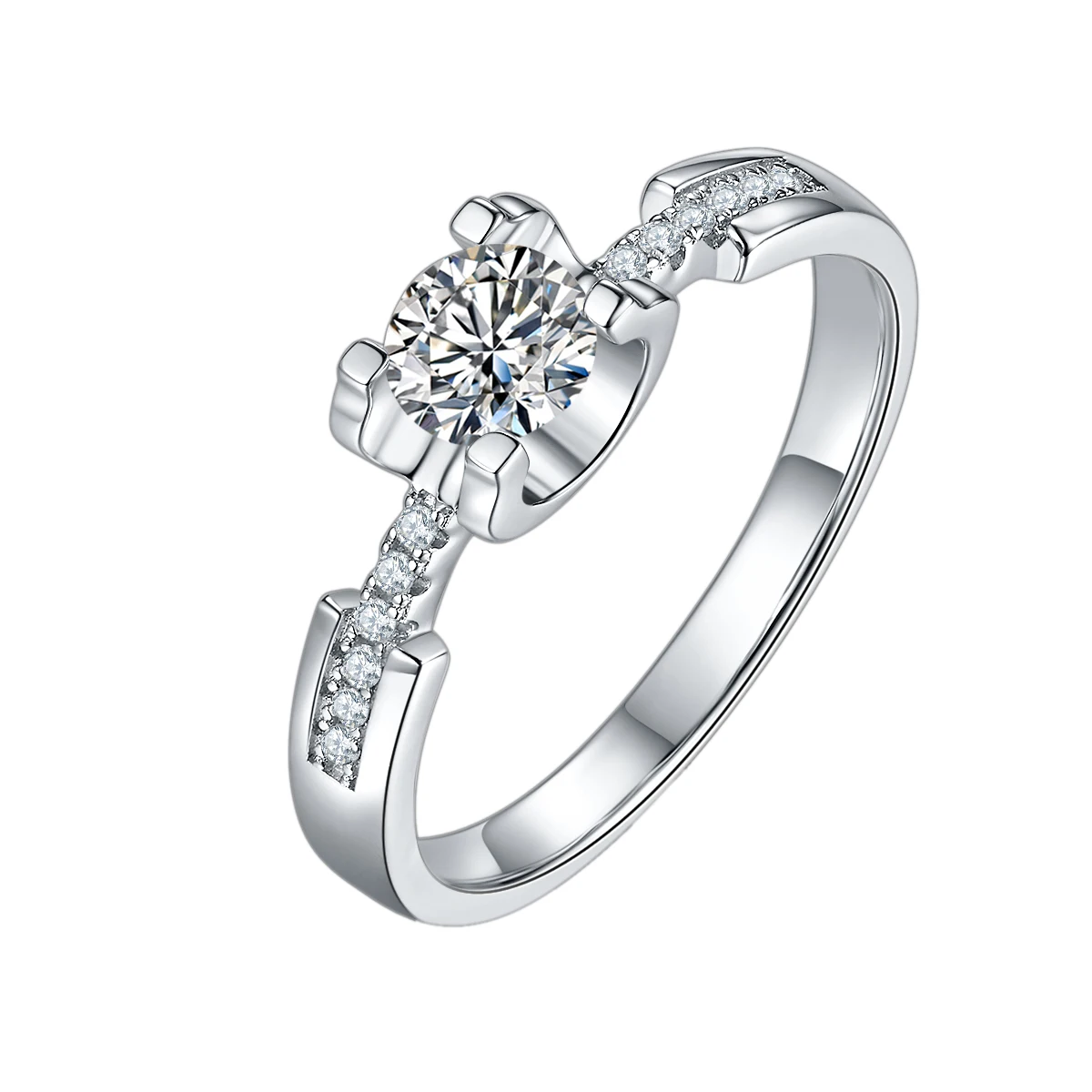 Кольцо женское из серебра 925 пробы с муассанитом, 6 зубцов