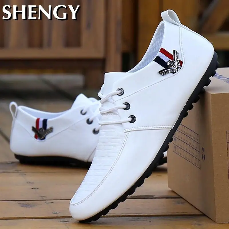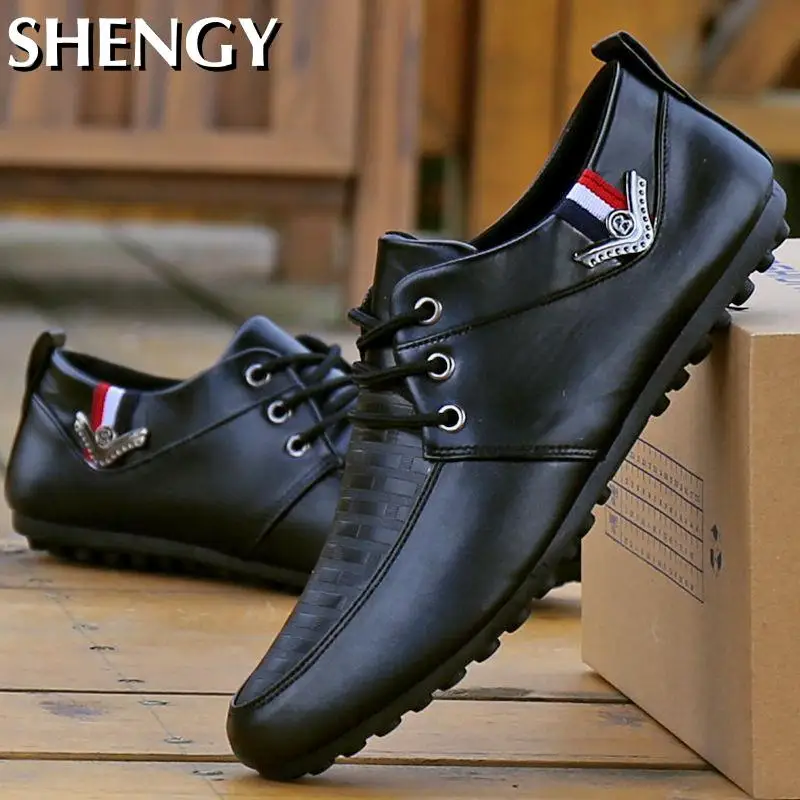 Туфли мужские из экокожи, роскошные брендовые, дышащие лоферы, без застежки, плоская подошва, повседневная обувь для вождения, 2020