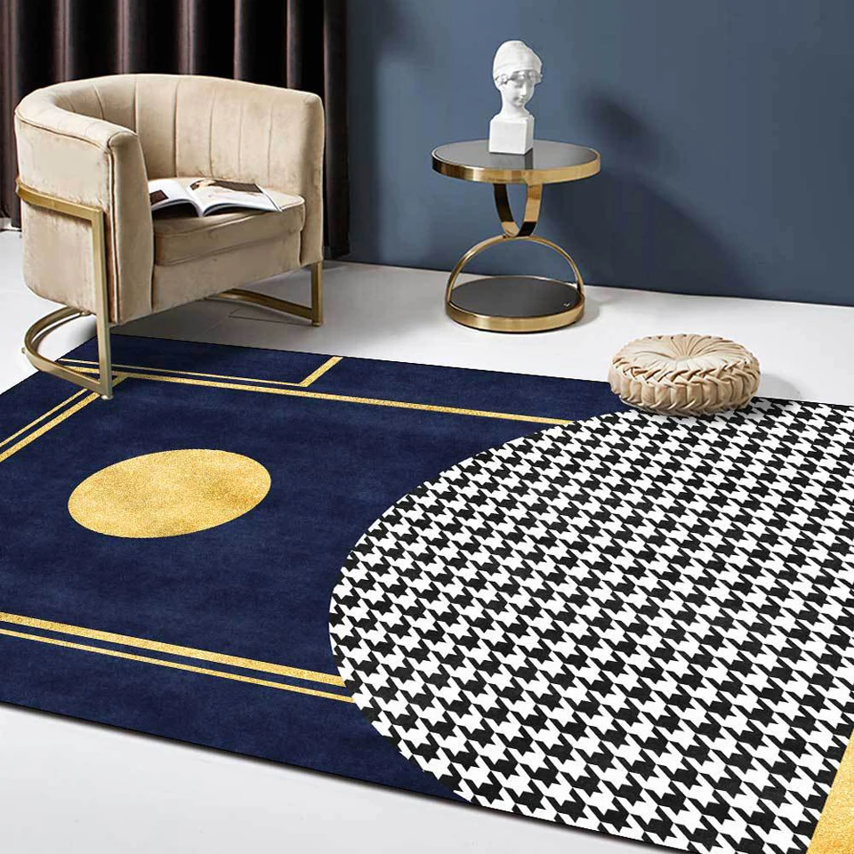 Alfombra nórdica dorada azul oscuro alfombras de Area geométrica de pata de gallo 3D para sala de estar alfombra de dormitorio alfombra para el piso del hogar