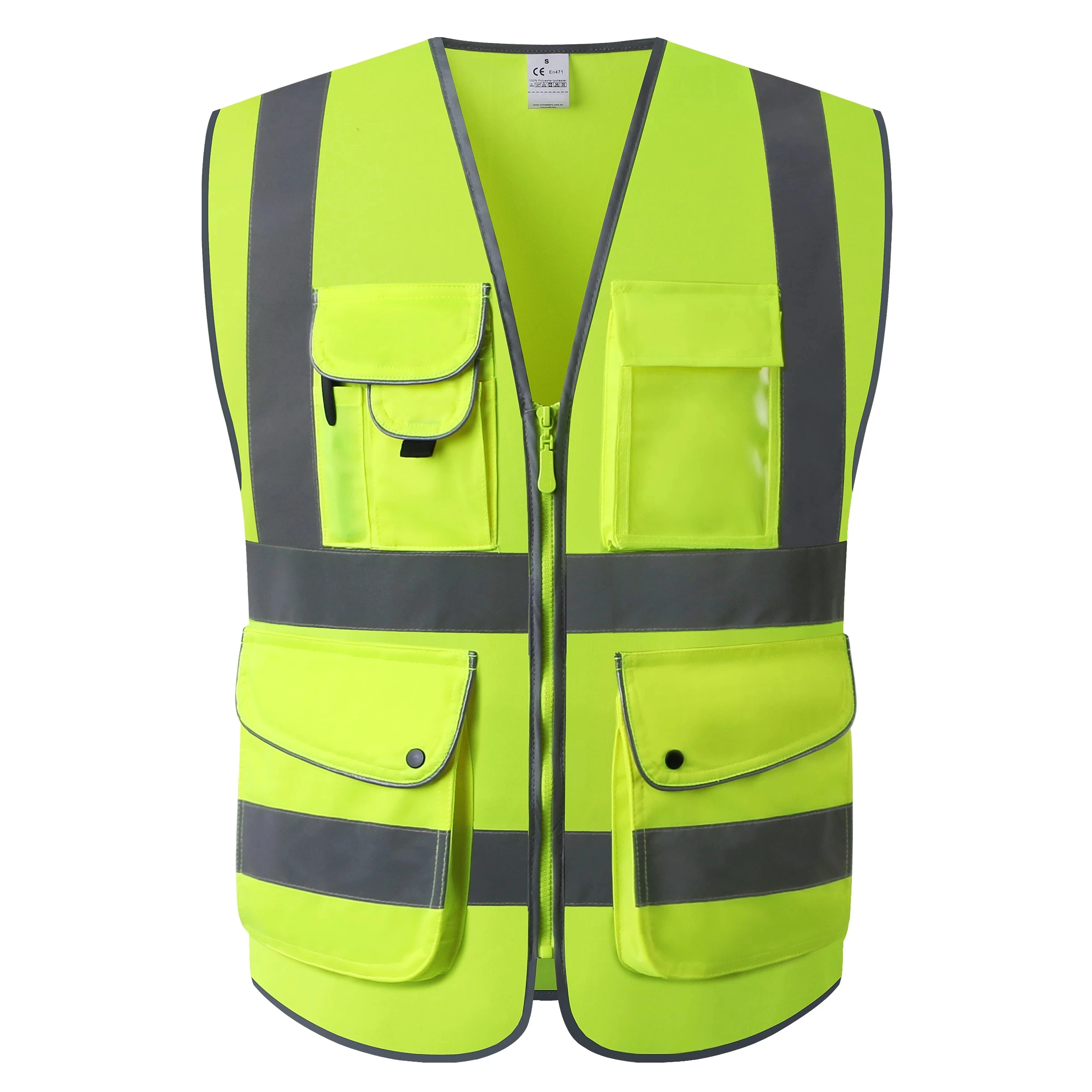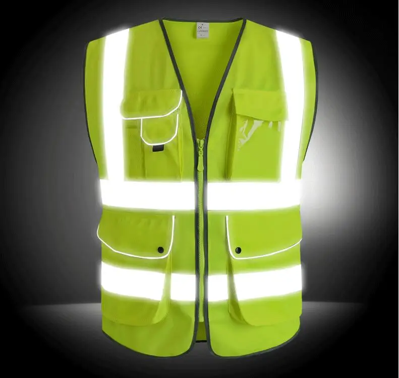 Защитный жилет на молнии, 9 карманов, высокая видимость, с отражающ...