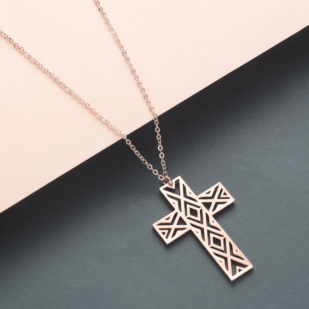 QIMING ажурное ожерелье с крестом, Женские Ювелирные изделия из нержавеющей стали, женское серебро, Иисус Христос, Сын Божий, полые мужские ожерелья, подарок