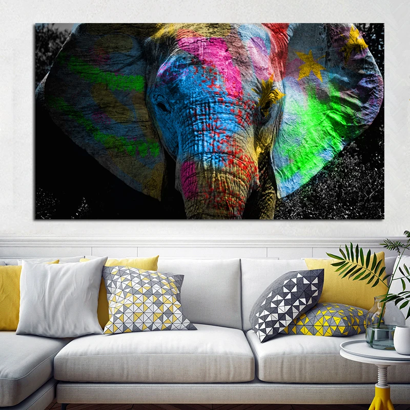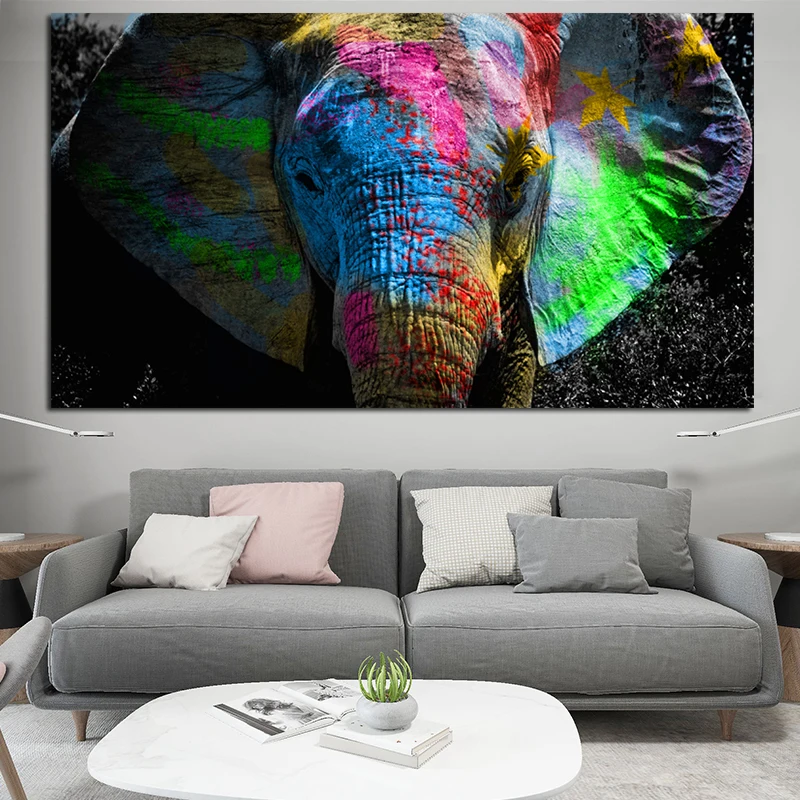 Большого размера разноцветный картина маслом в виде африканского слона, Картина на холсте с изображением свободных животных, графический Декор для дома, гостиной