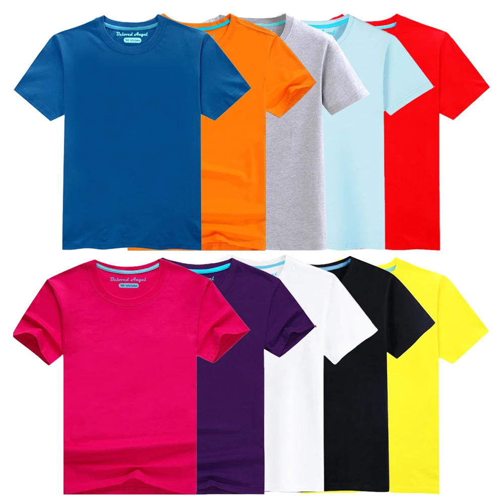 Детская Однотонная футболка Топы для мальчиков и девочек, однотонная хлопковая одежда для малышей Детские летние футболки ярких цветов, От 3 до 15 лет