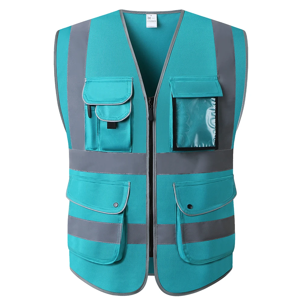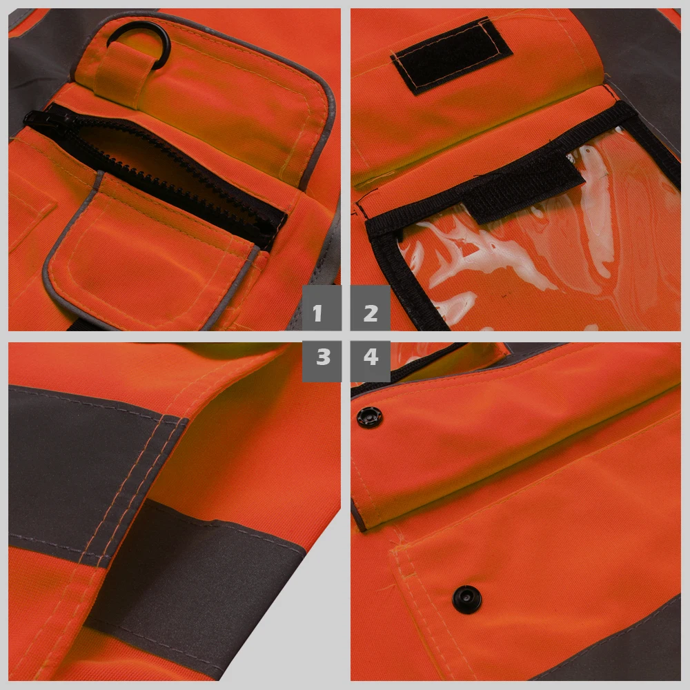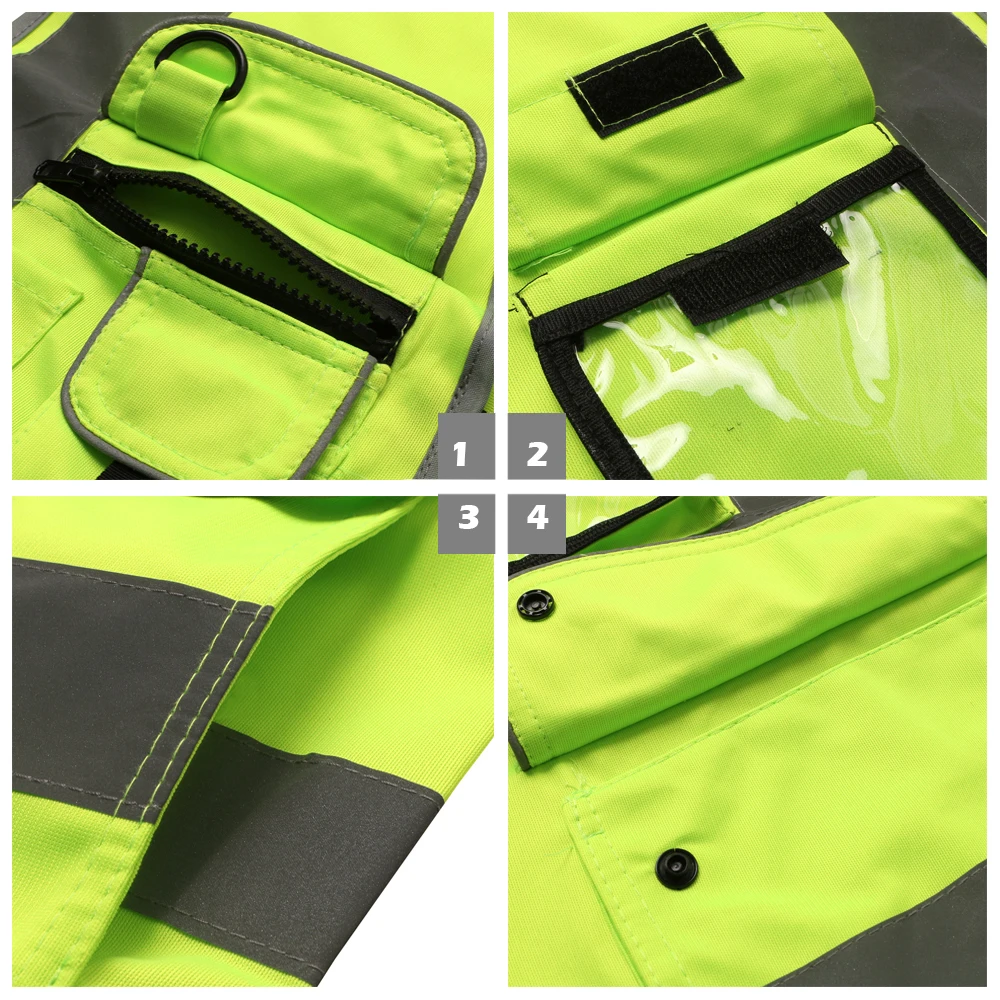 Многофункциональные карманы дизайн: Этот жилет безопасности поставляется с 9 карманами: 1 ID прозрачный ПВХ карман/1 ручка карман/1 маленький телефон или радио карман/2 нагрудный карман/2 просторные нижние карманы с кнопками/2 большие Боковые вставки карман.
