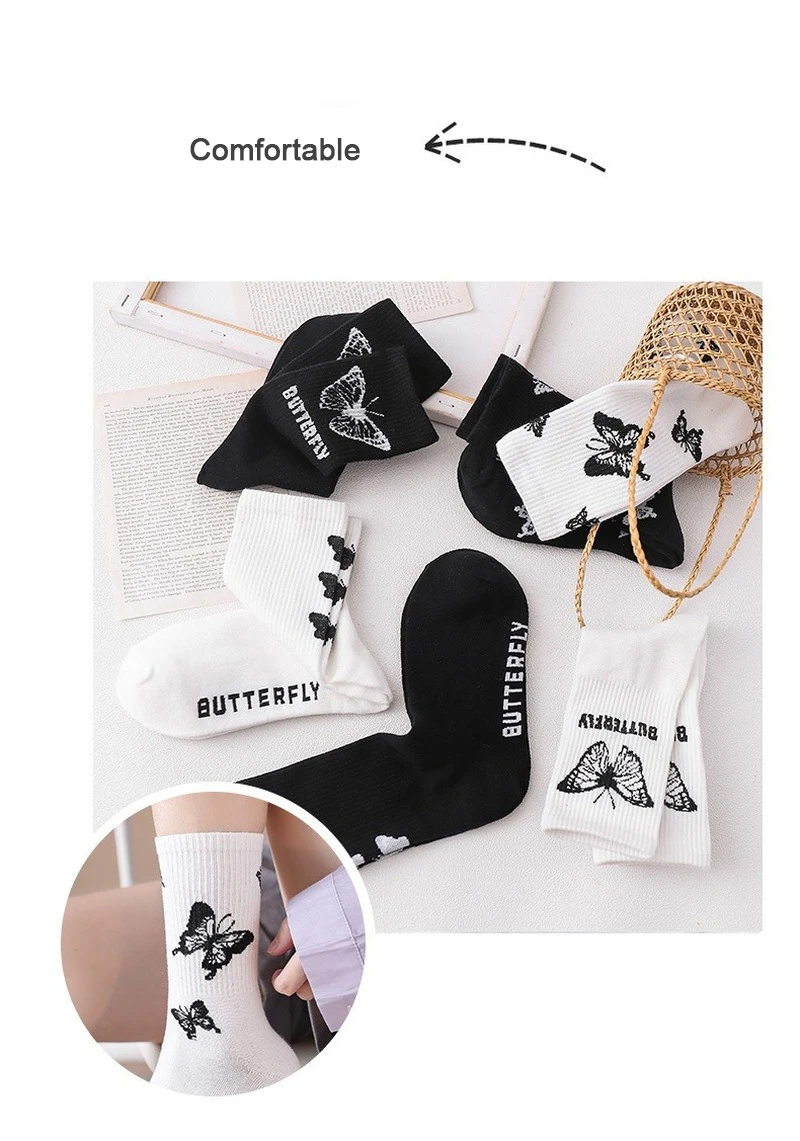 Новые носки с бабочками женские уличные Harajuku женские носки модные европейские размеры 35-42 модные носки для скейтборда