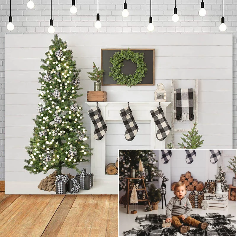 MOCSICKA Фотофон по индивидуальному заказу, Рождественская елка свет венки камин носки-игрушки День рождения фон фотосессия Фотостудия