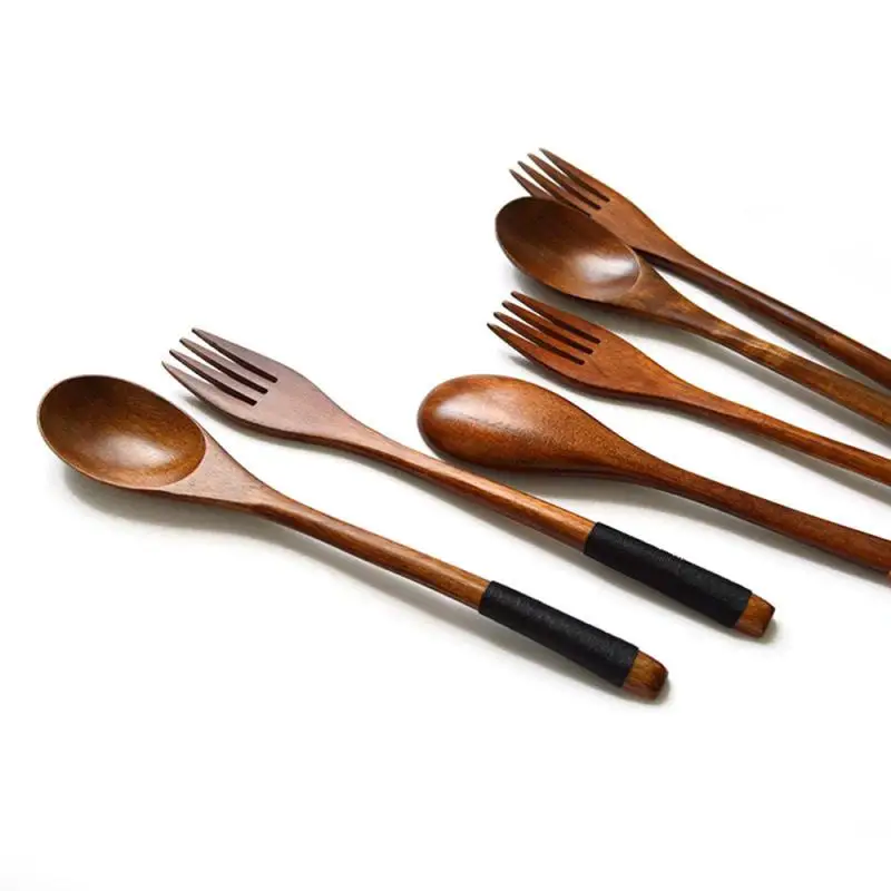 2 шт.набор, деревянные столовые приборы с ложкой и вилкой