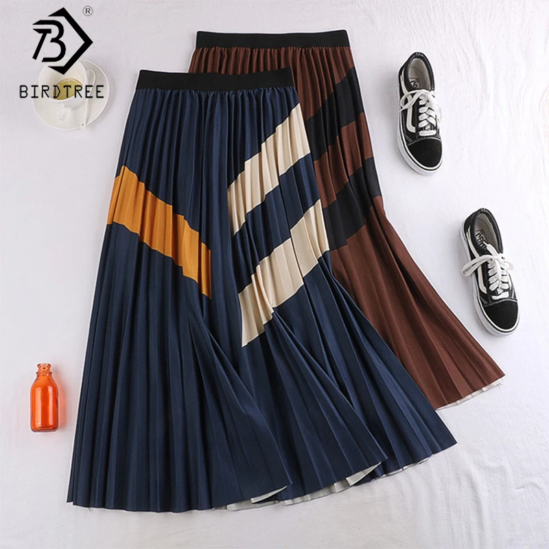 Женская юбка-трапеция Pachwork, плиссированная юбка миди с эластичным поясом на осень и зиму 2020, B08904K