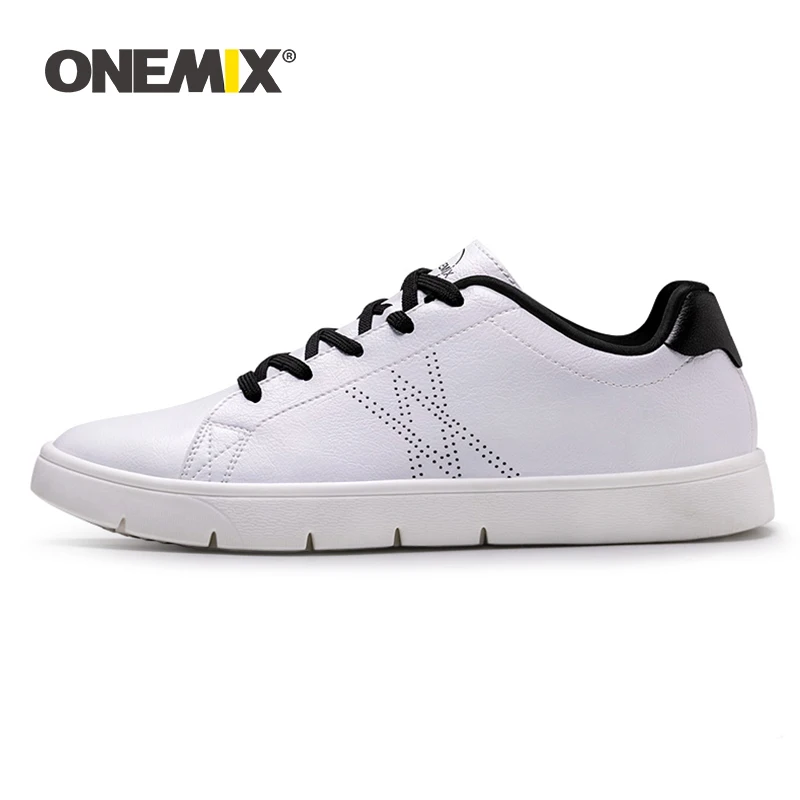 Кроссовки ONEMIX мужские классические для скейтборда, белые удобные кожаные, на шнуровке, Повседневные Легкие Прогулочные кроссовки на плоской подошве