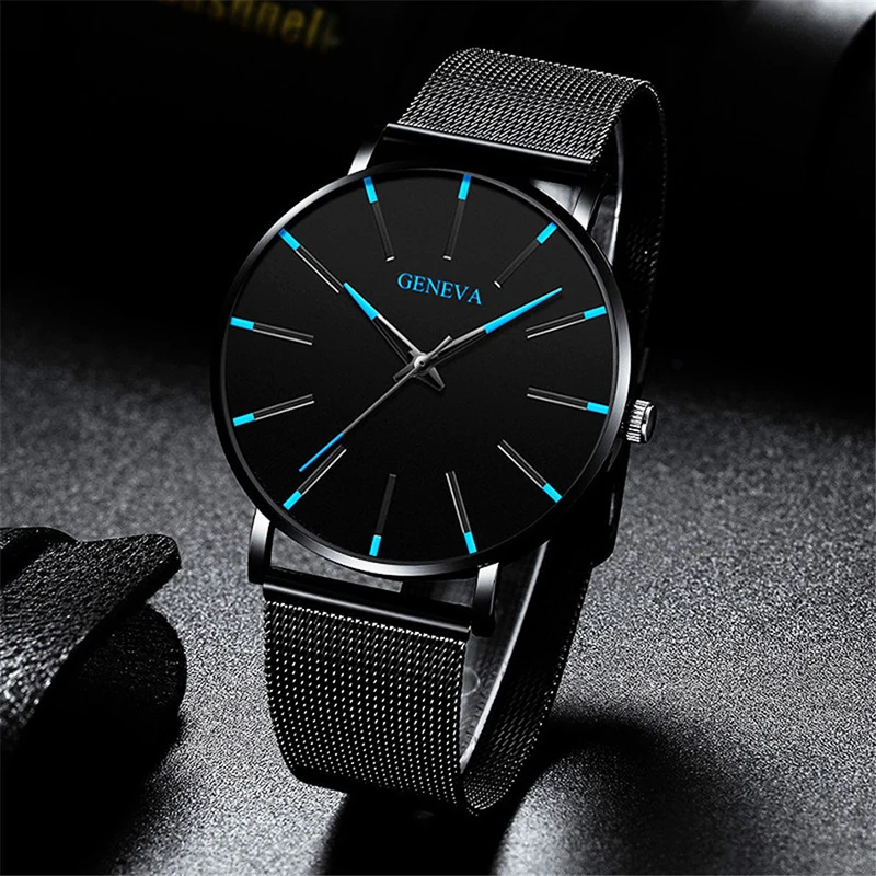 2021 минималистичные мужские часы Женева, ультратонкие синие кварце...
