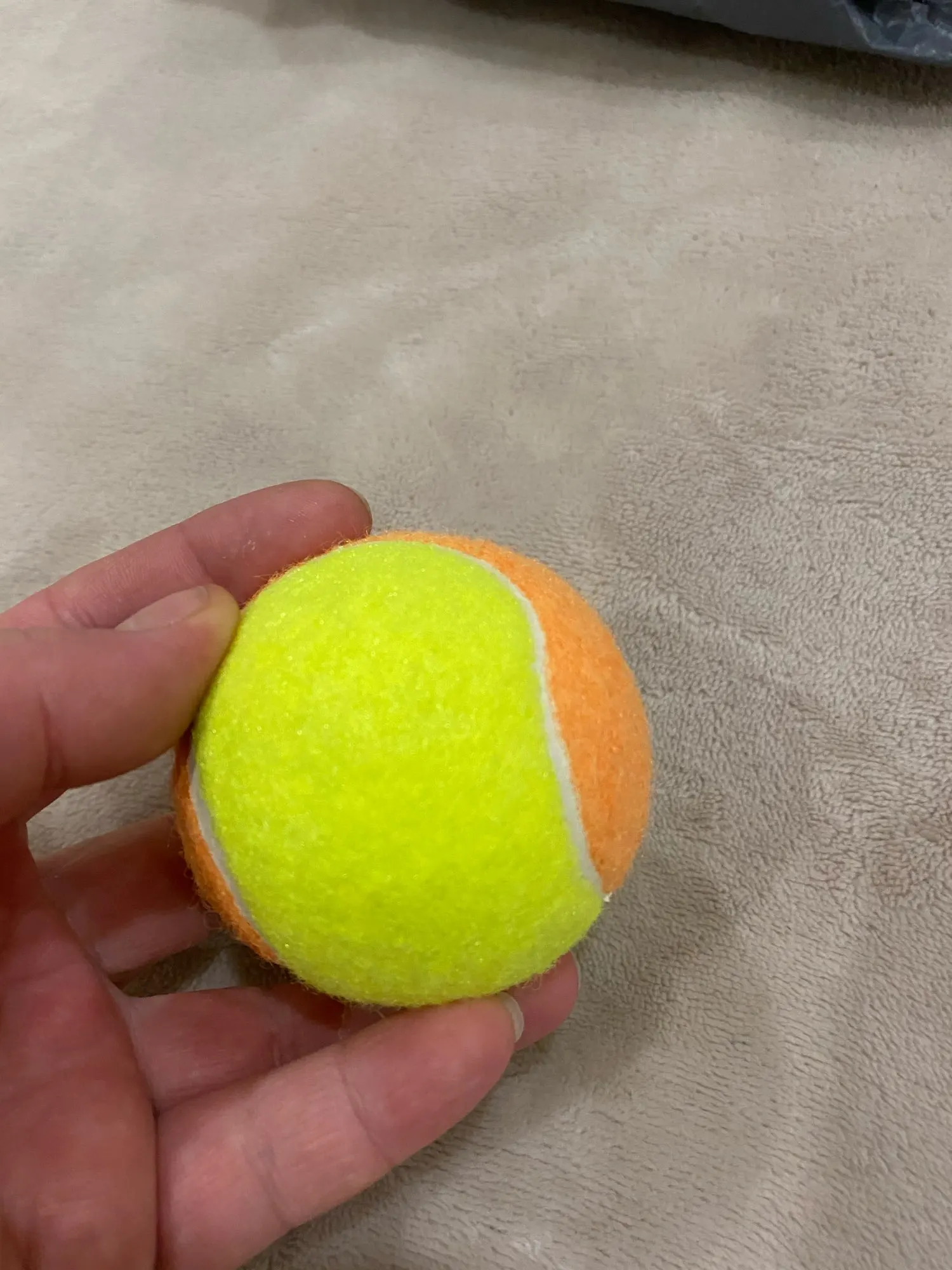 cette balle a la taille réelle du balle de tennis